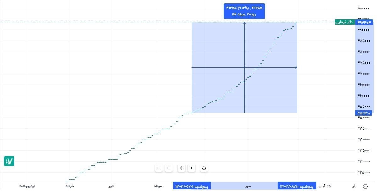 نرخ دلار نیما در ابتدای شهریور ماه که همتی در وزارت اقتصاد مستقر شد در کانال 45200 تومان قرار داشت و 70 روز بعد یعنی 10 آبان ماه پس از فشارهای مستمری که او به بانک مرکزی وارد کرد، نرخ نیما با افزایش 9.1 درصدی به کانال 49300 هزار تومان رسیده است.