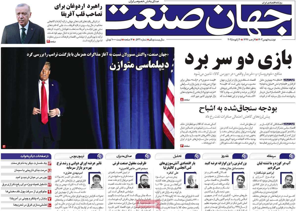 صفحه نخست روزنامه های دوشنبه یک بهمن ماه ۱۴۰۳