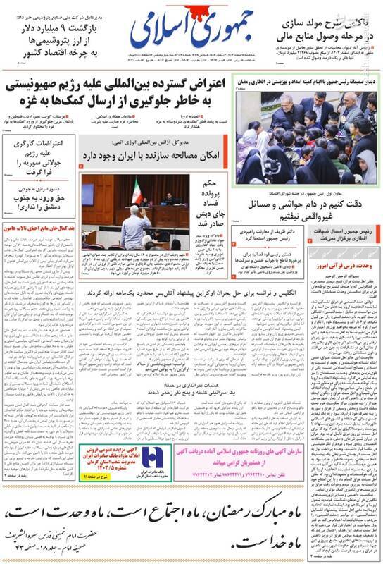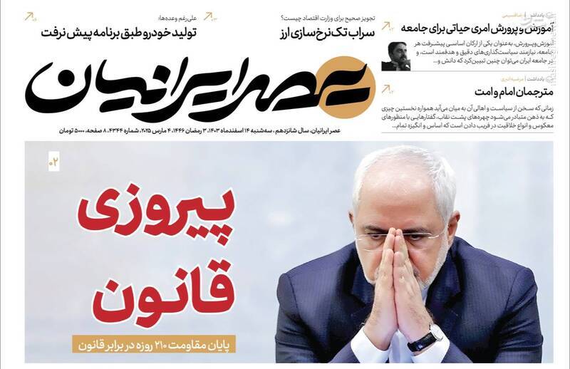 شرط وفاق، احترام به قانون و دفاع از معیشت مردم است، نتهای سکوت در آهنگ رشد اقتصادی، هشدار ایران به تجزیه سوریه، از جمله تیترهای روزنامههای سهشنبه ۱۴ اسفند هستند.