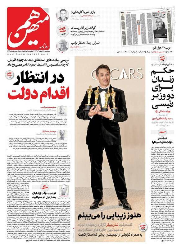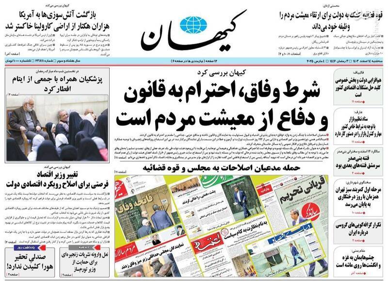 صفحه نخست روزنامهها امروز سه شنبه ۱۴ اسفند