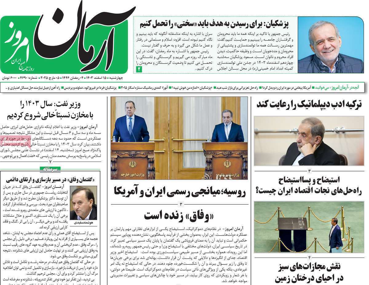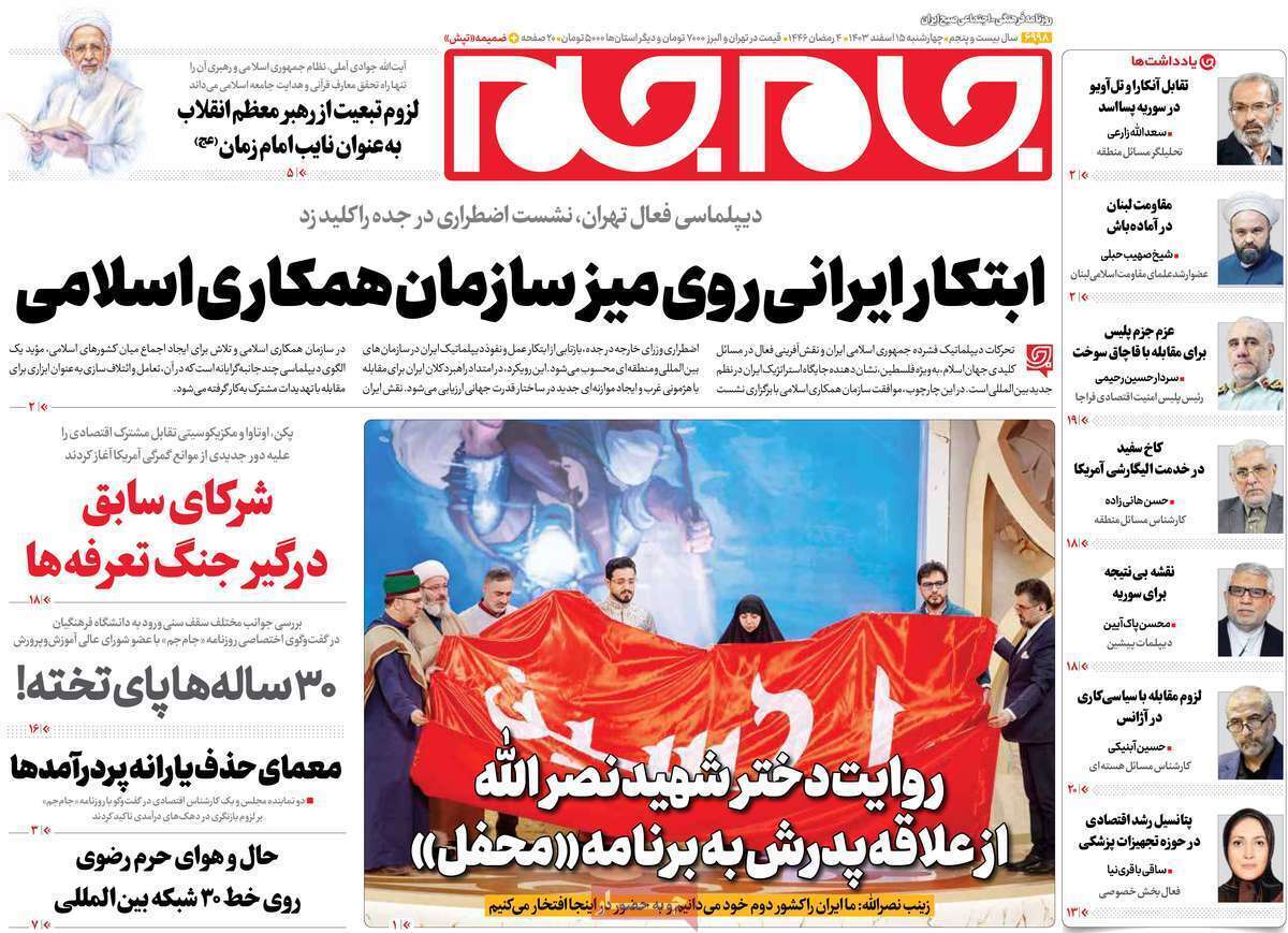 صفحه نخست روزنامهها امروز چهار شنبه ۱۵ اسفند