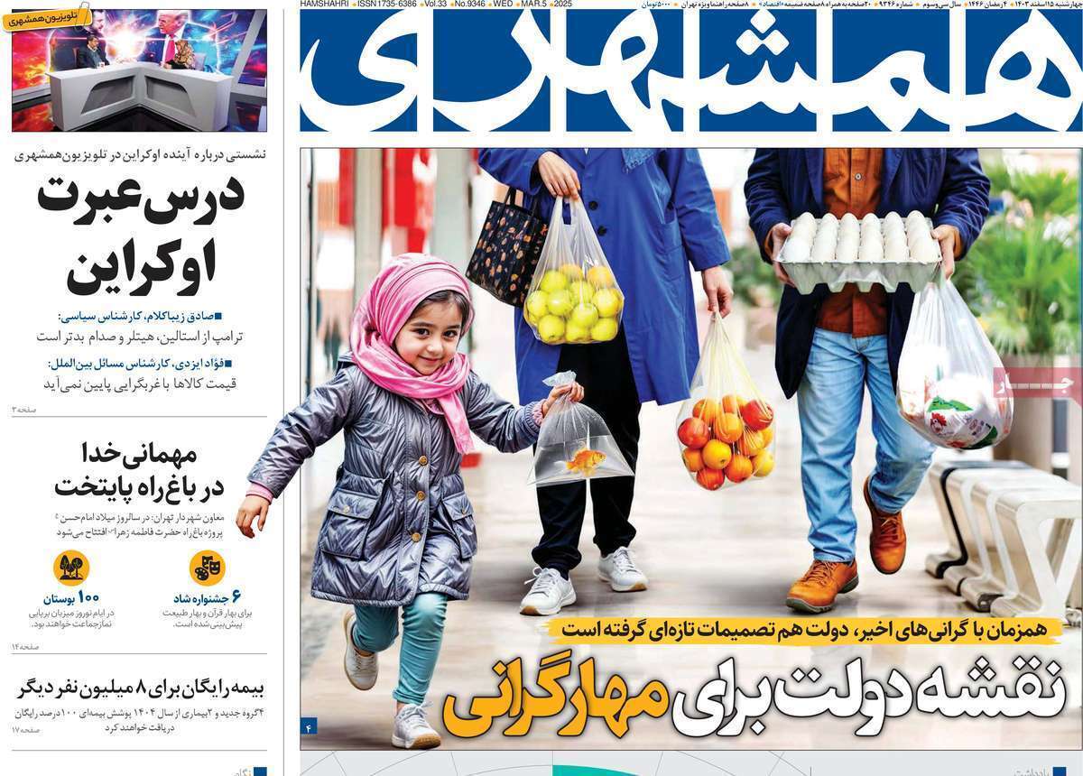 صفحه نخست روزنامهها امروز سه شنبه ۱۴ اسفند