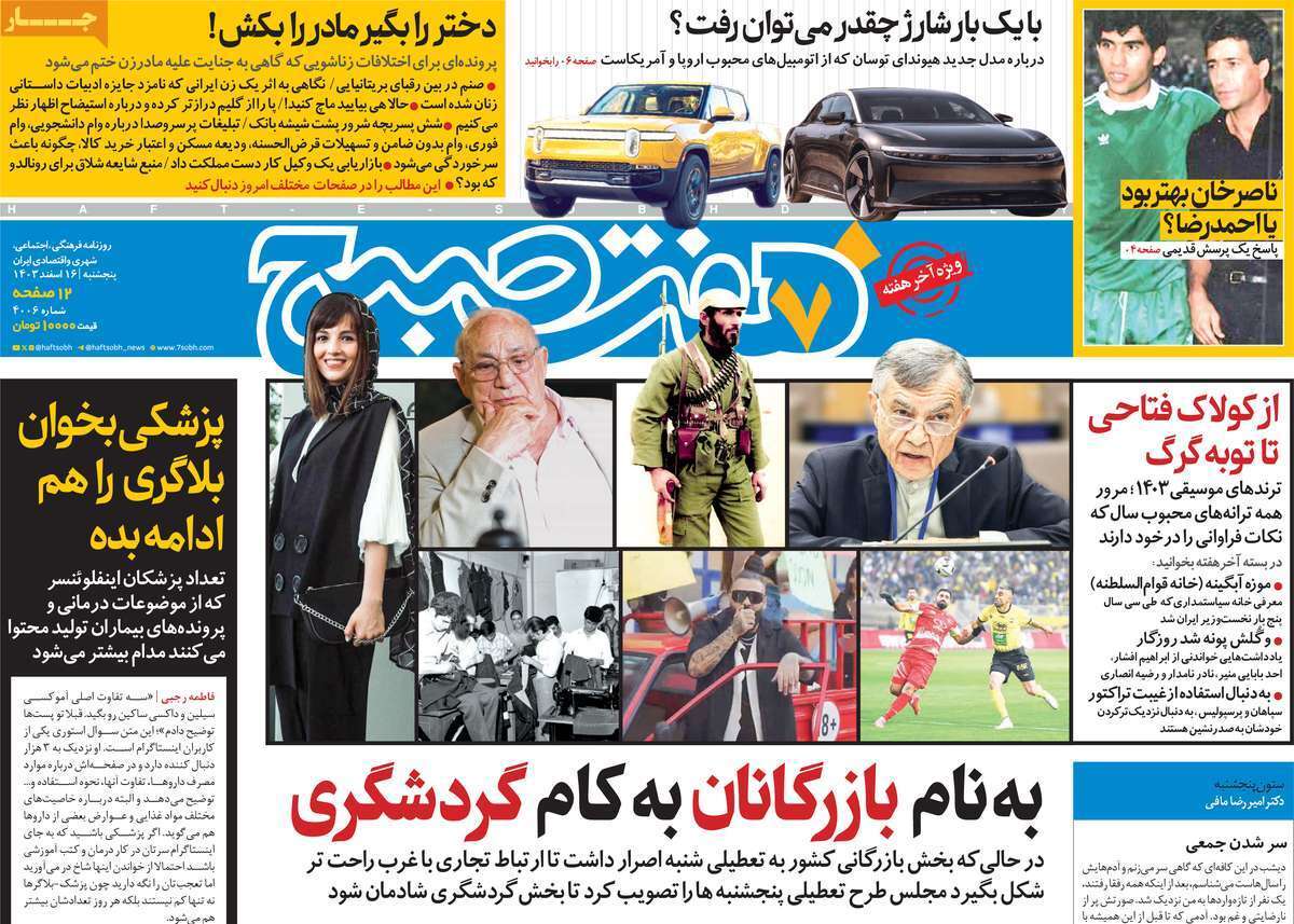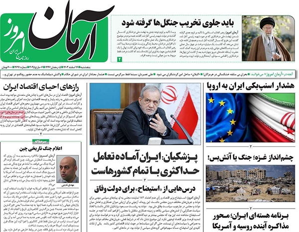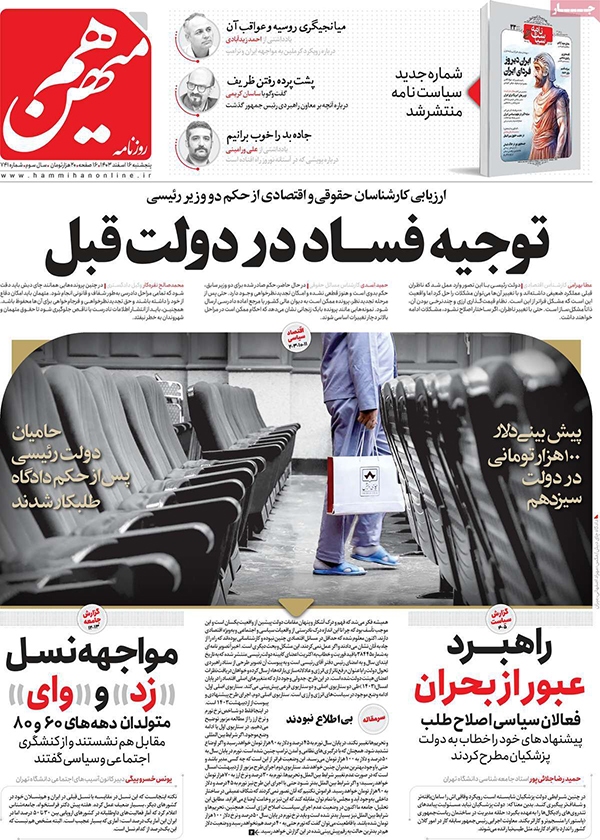 صفحه اول روزنامه ها امروز پنجشنبه ۱۶ اسفند ۱۴۰۳