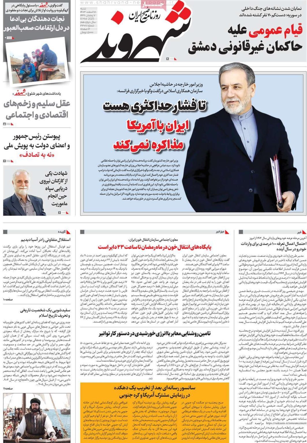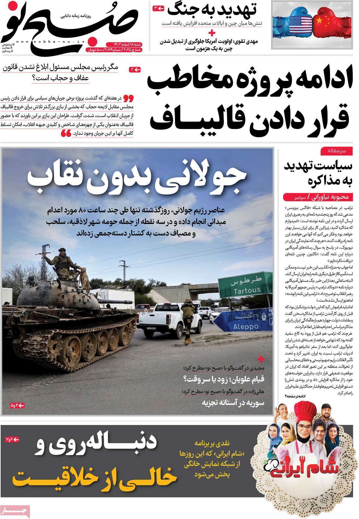 صفحه اول روزنامههای شنبه ۱۸ اسفند ۱۴۰۳
