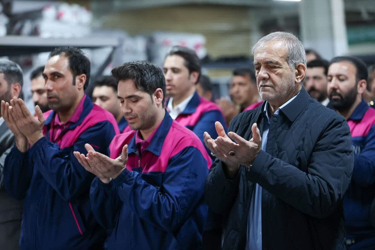 در ادامه تصاویری از اقامه نماز جماعت با حضور مسعود پزشکیان را مشاهده میکنید؛