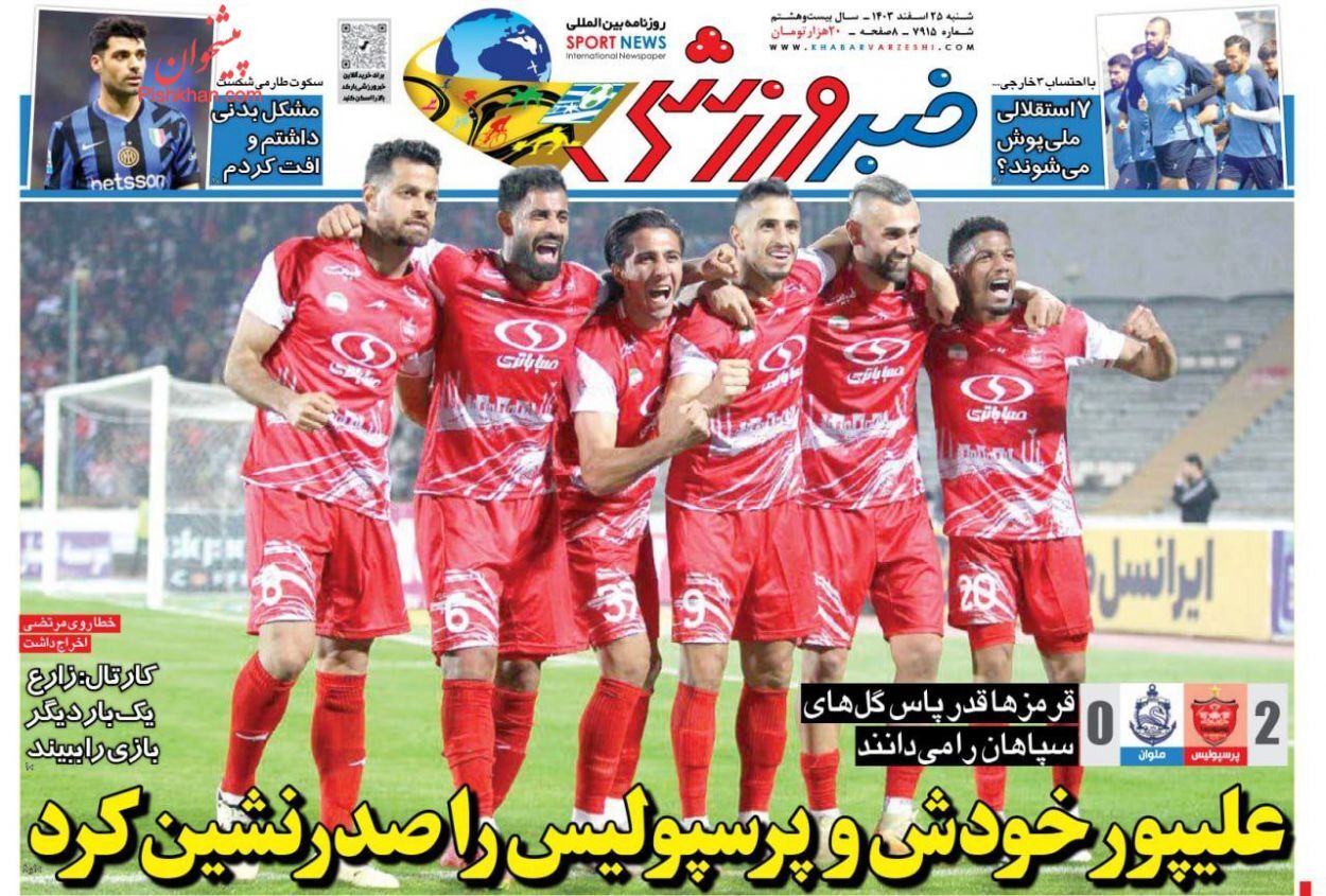 صفحه نخست روزنامههای ورزشی امروز شنبه ۲۵ اسفند ۱۴۰۳