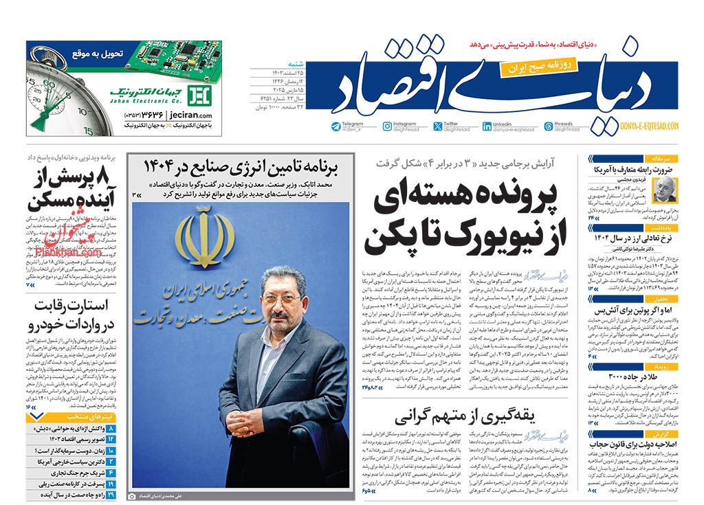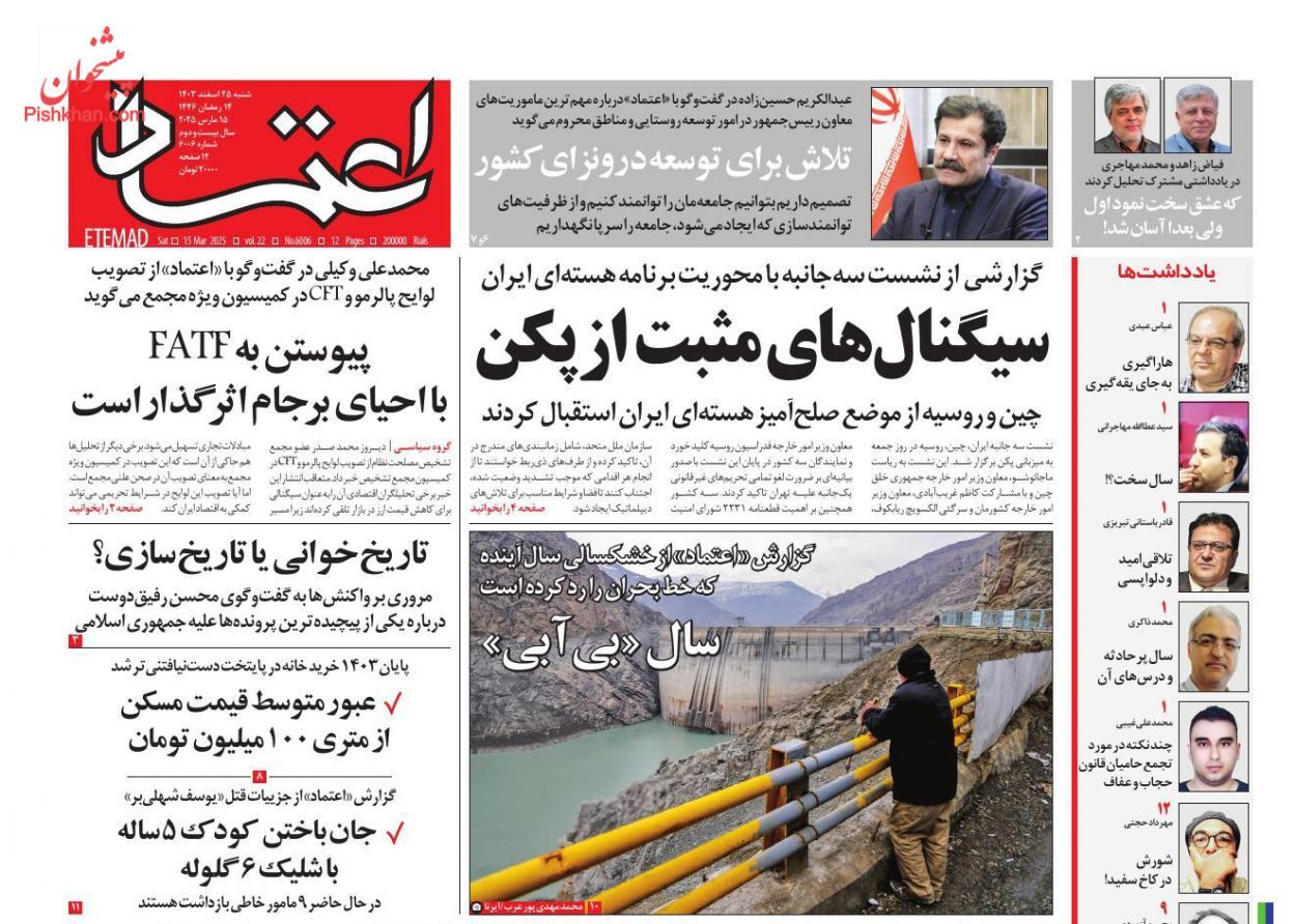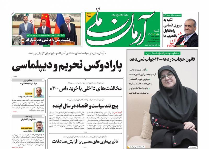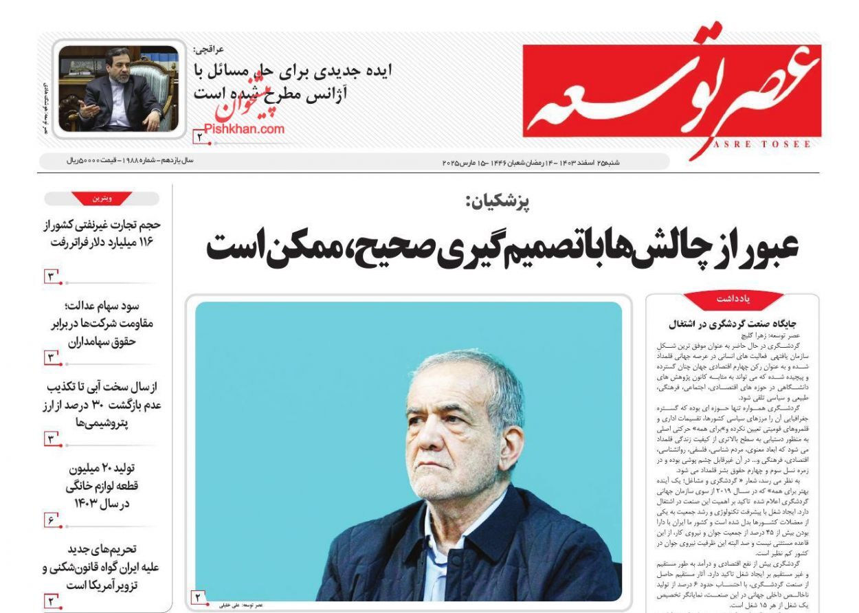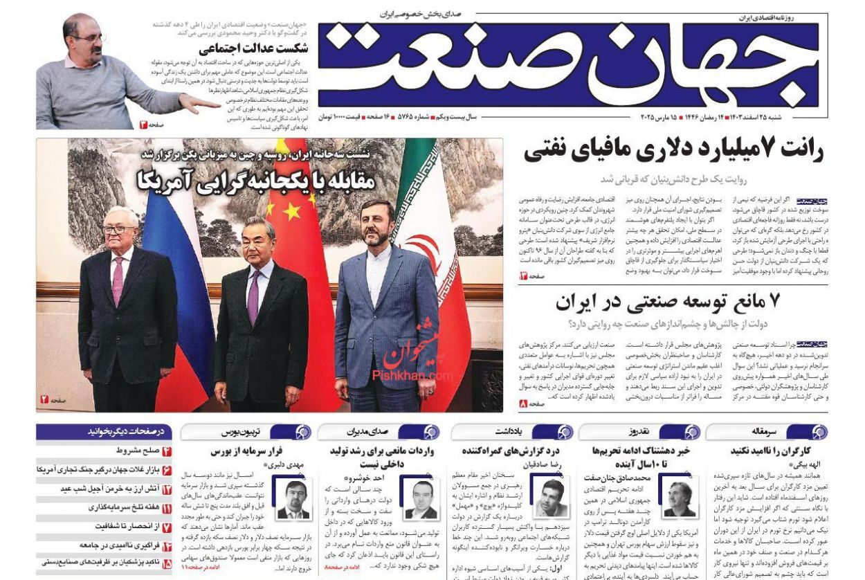 صفحه نخست روزنامهها امروز شنبه ۲۵ اسفند ۱۴۰۳