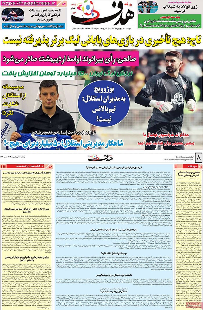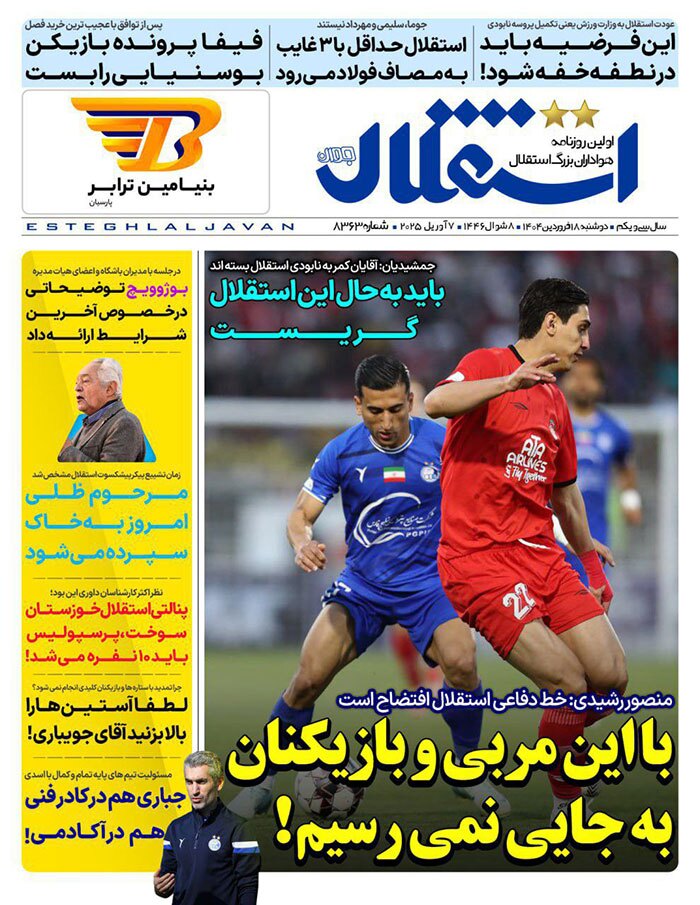 عناوین روزنامههای ورزشی امروز سهشنبه ۱۹ فروردين ۱۴۰۴