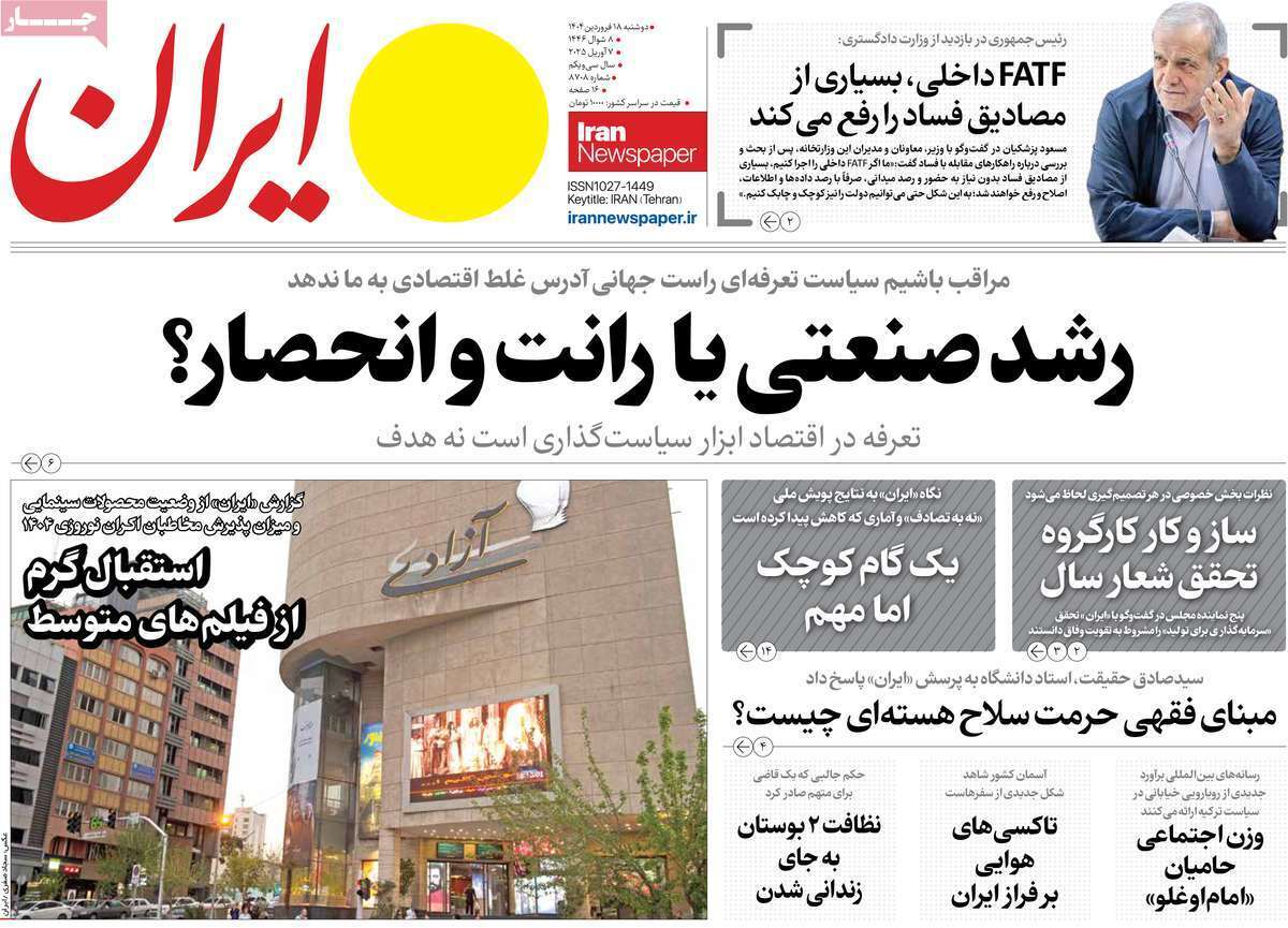 عناوین روزنامههای امروز یکشنبه ۱۸ فروردین ۱۴۰۴