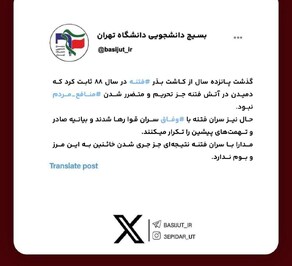 بسیج دانشجویی دانشکدگان کشاورزی و منابع طبیعی دانشگاه تهران در این رابطه در بیانیهای خطاب به وی اعلام کرد: شما که با مواضع و تفکراتتان نتوانستید حتی یک درصد مردم را با خود همراه سازید و با وجود هزینه هنگفت تبلیغاتی، از آرای مخدوش و باطله نیز کمتر مورد اعتماد ملت واقع شدید، با ادعای حق طلبی بدون هیچگونه سند و مدرکی، به نظام اسلامی تهمت می زنید؟