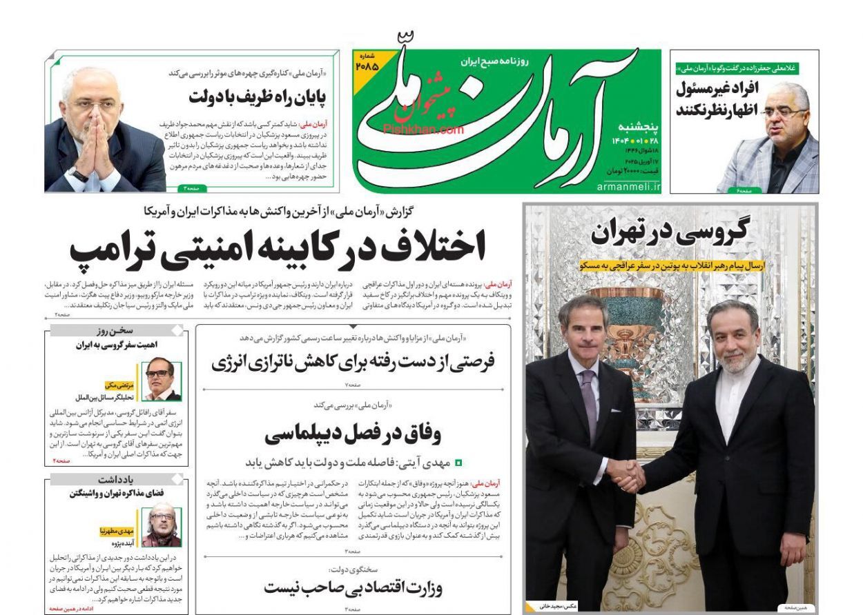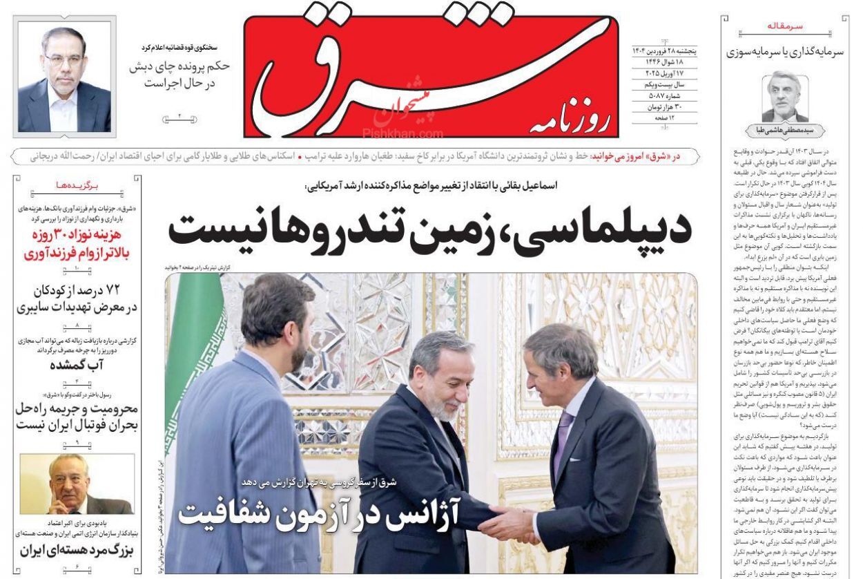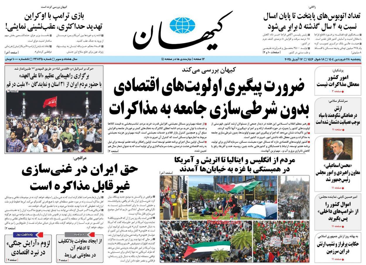 عناوین روزنامههای پنجشنبه ۲۸ فروردین ۱۴۰۴