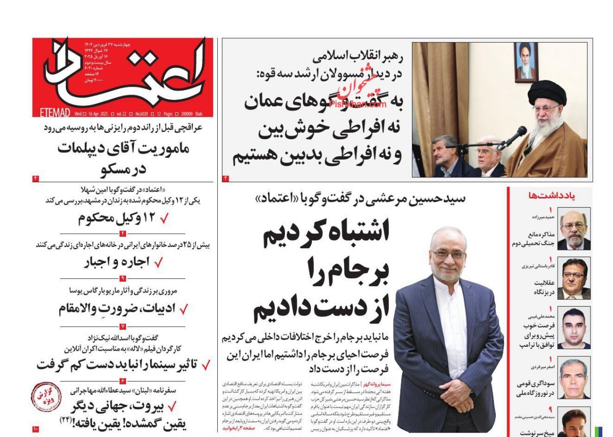 عناوین روزنامههای چهارشنبه ۲۷ فروردین ۱۴۰۴