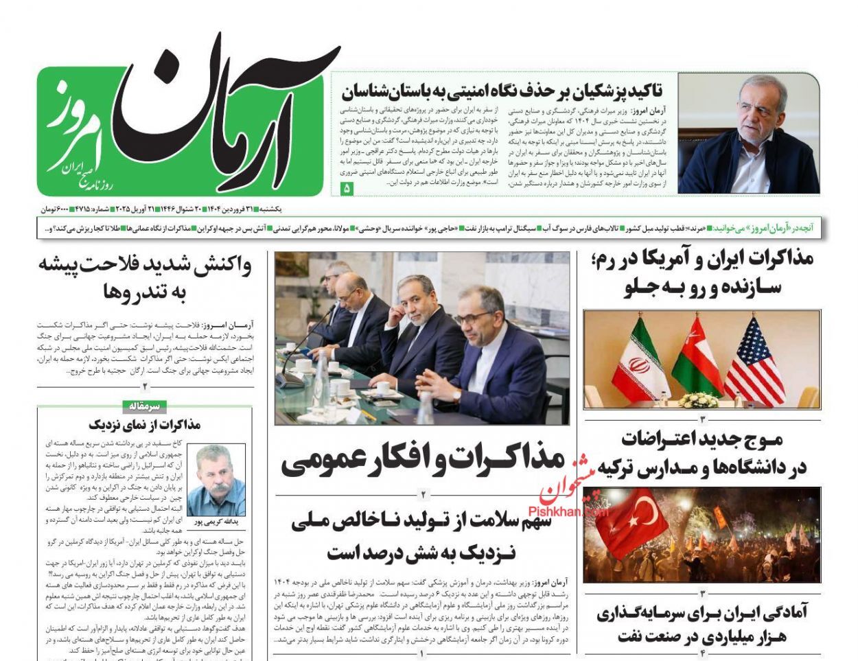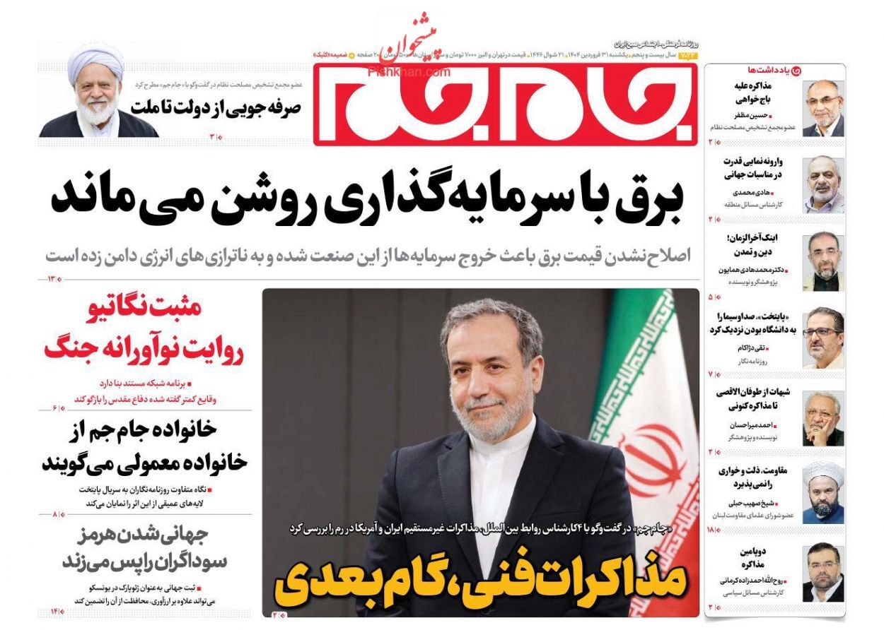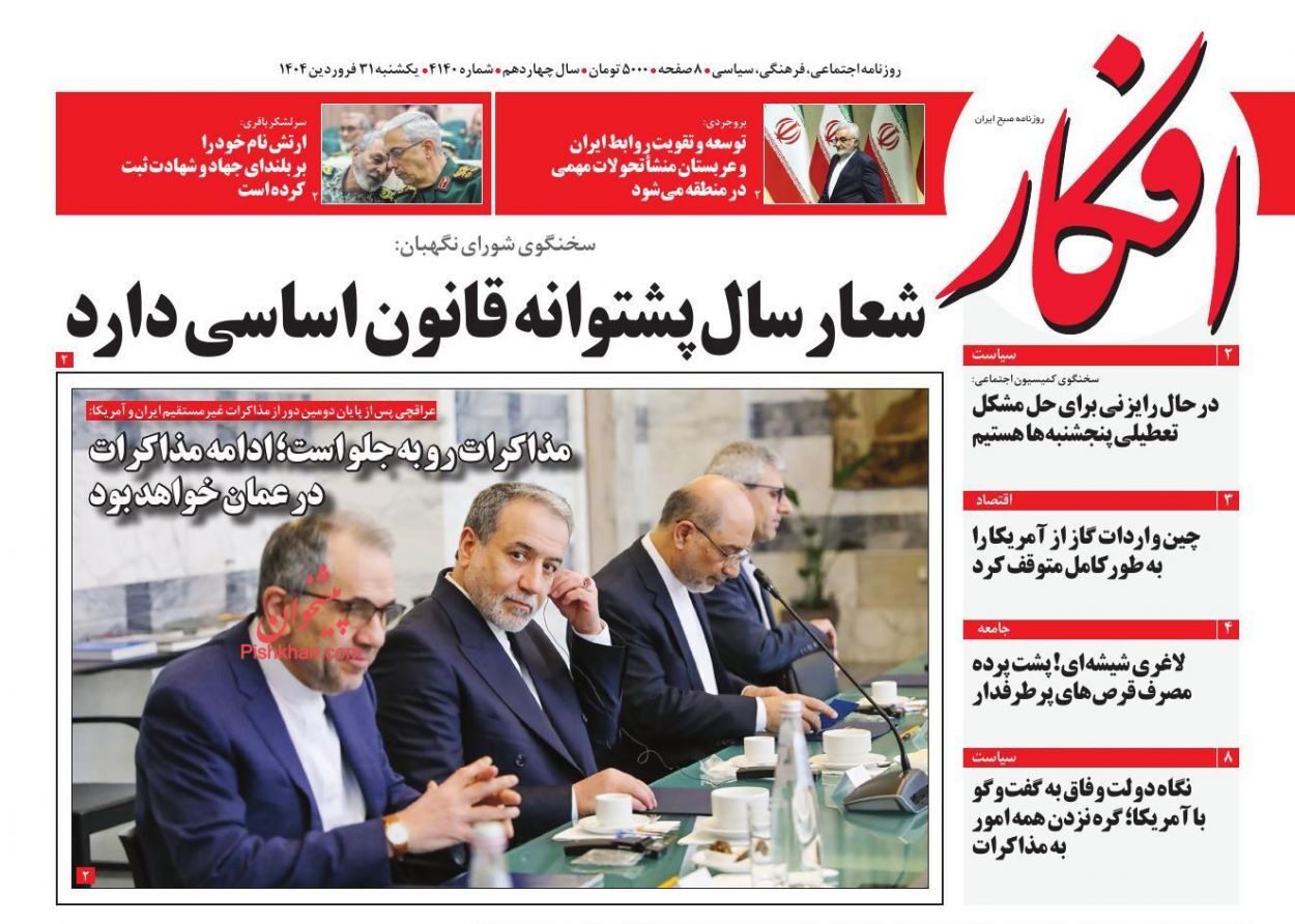 در ادامه عناوین روزنامهها یکشنبه ۳۱ فروردین ۱۴۰۴ را در ادامه بخوانید.