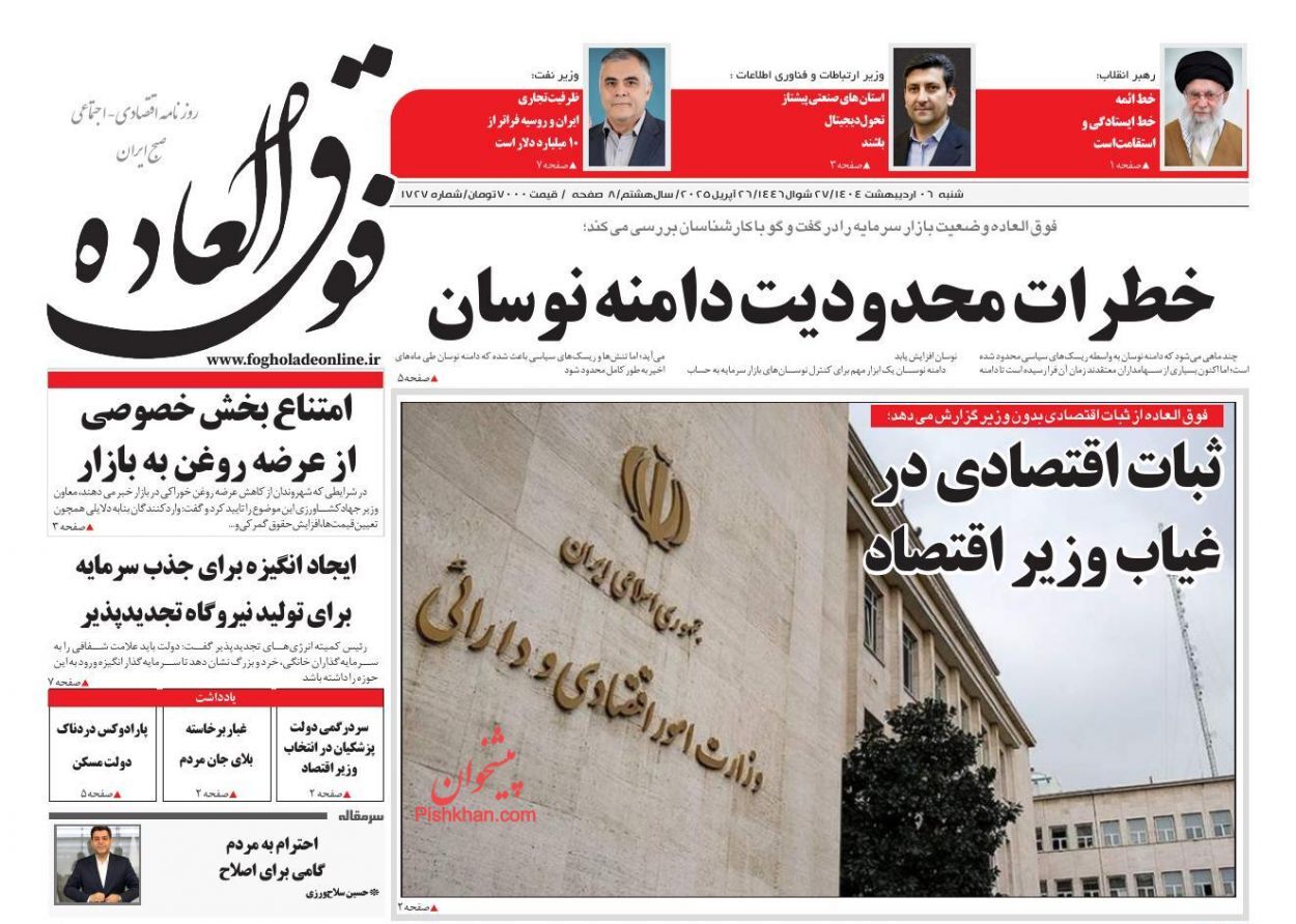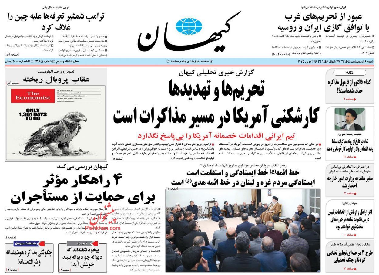 عناوین روزنامه های امروز شنبه ۶ ارديبهشت ۱۴۰۴