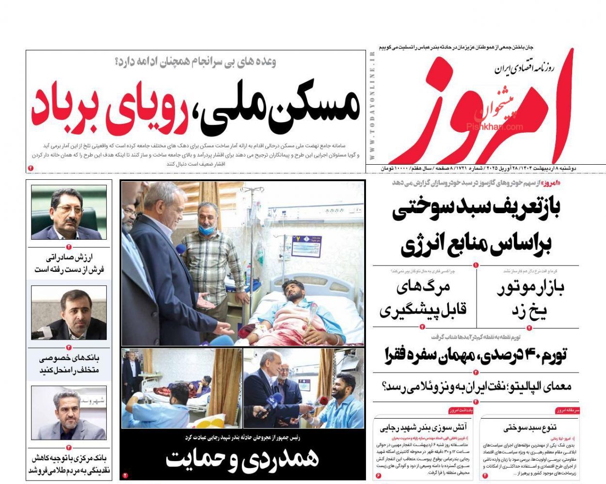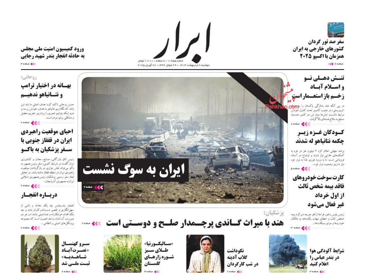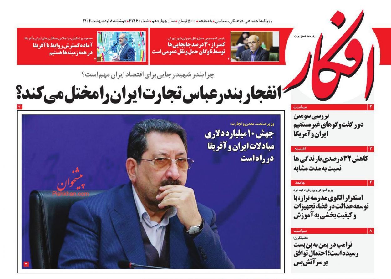 عناوین روزنامه های دوشنبه ۸ ارديبهشت ۱۴۰۴