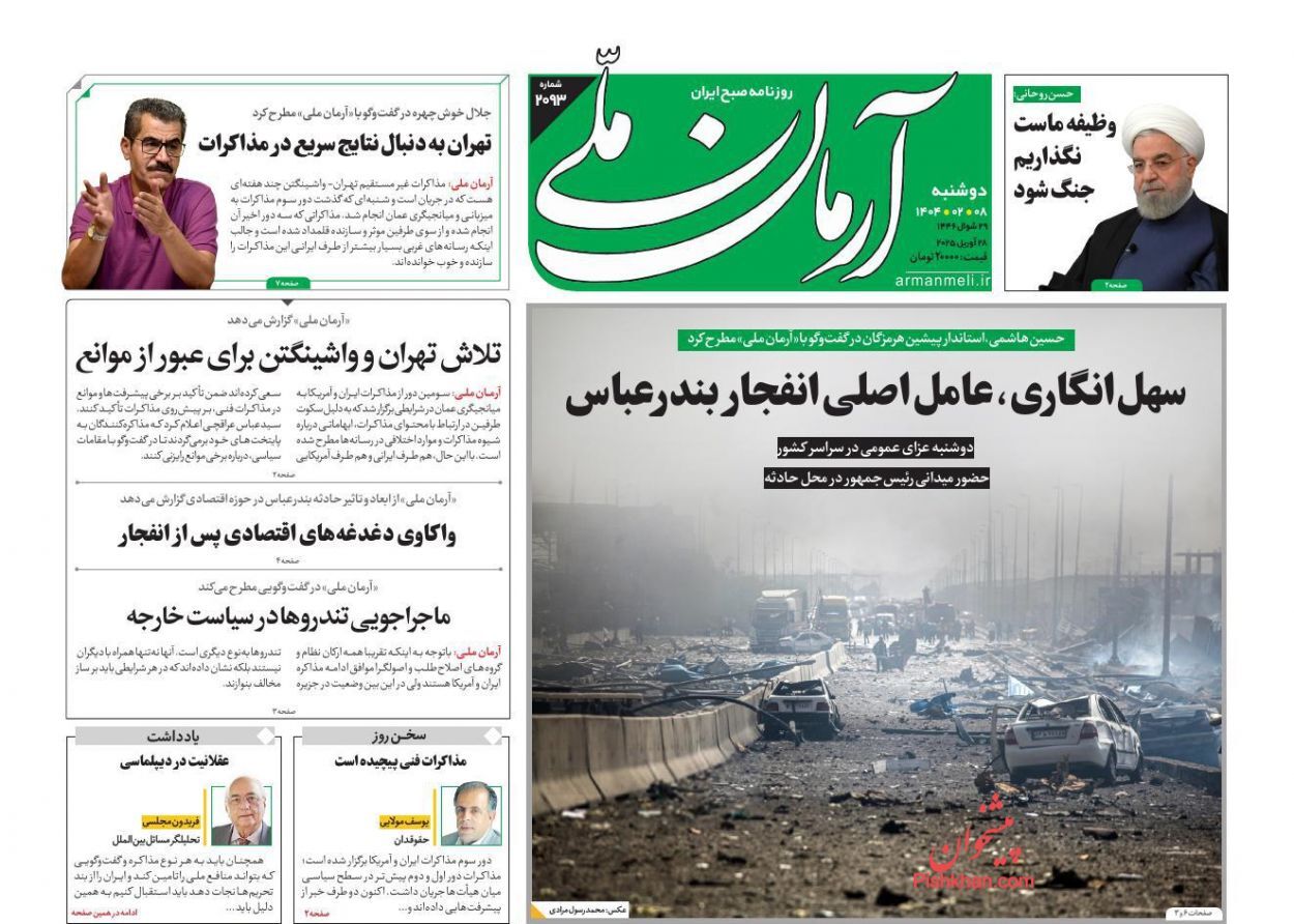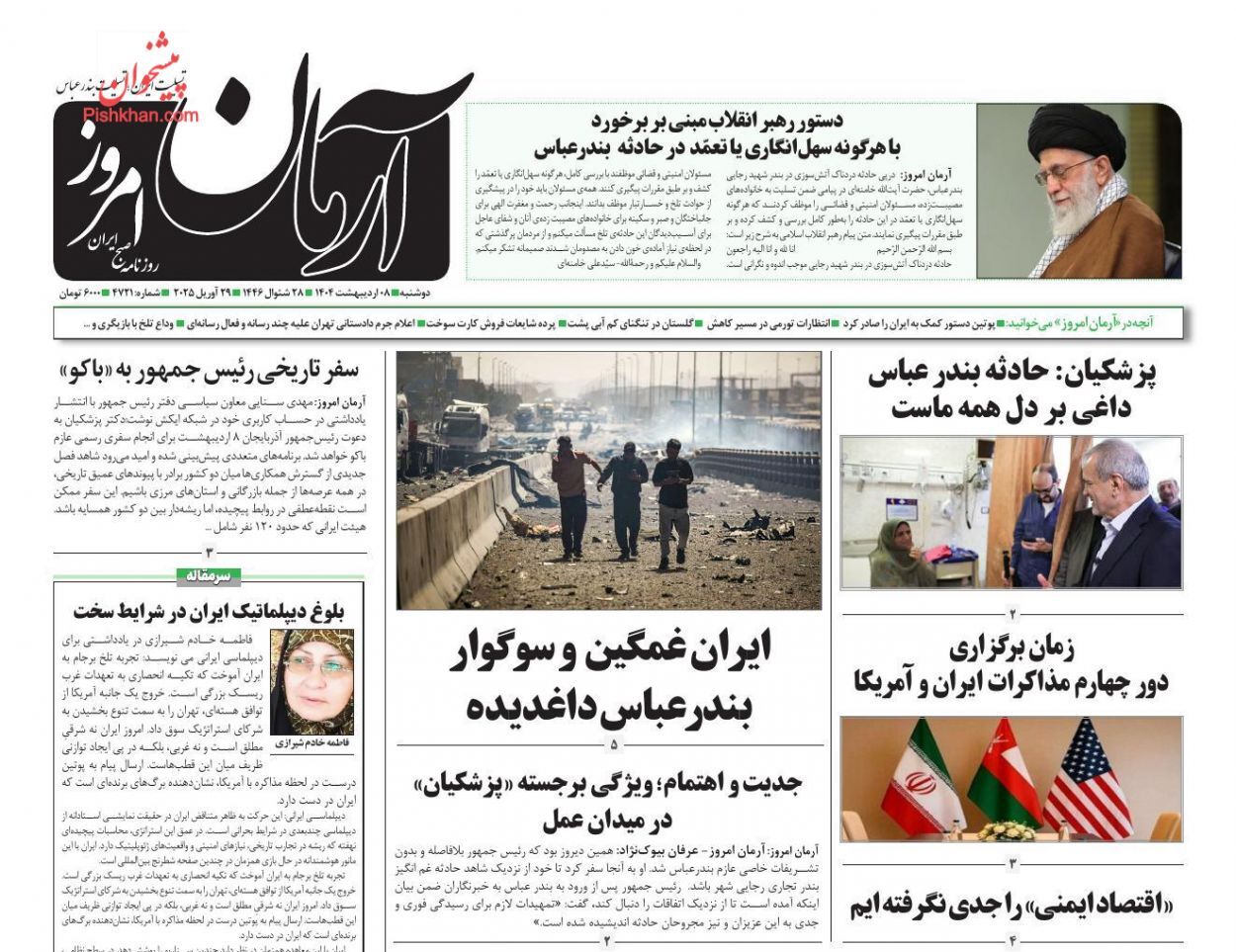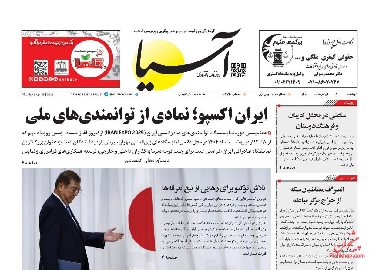 عناوین روزنامه های دوشنبه ۸ ارديبهشت ۱۴۰۴