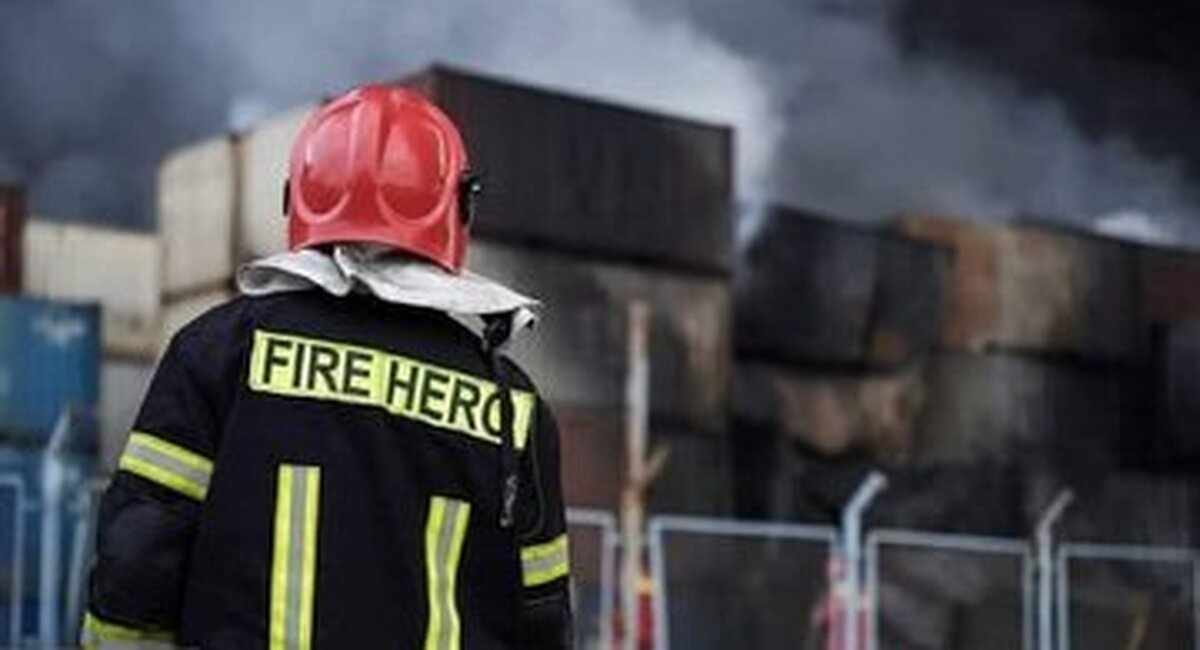 عکس | چهره خسته یک آتشنشان در حاشیه عملیات در بندر شهید رجایی