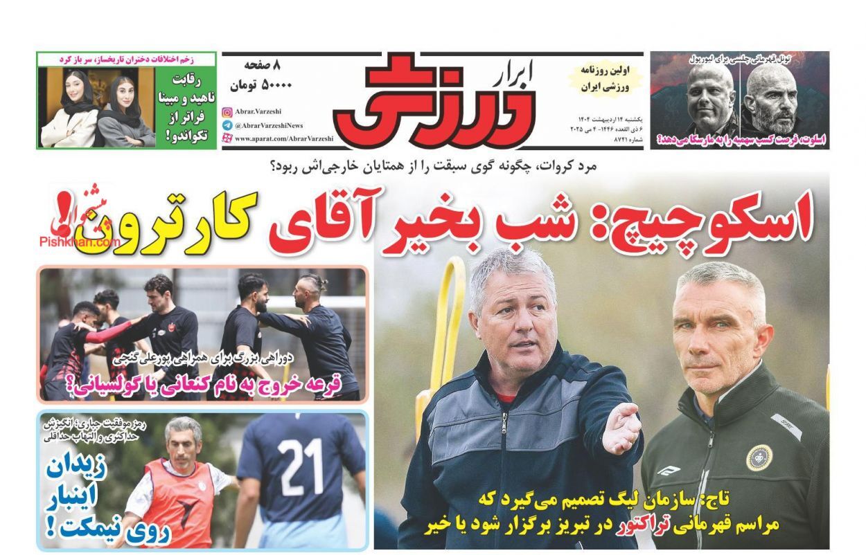 عناوین روزنامه های ورزشی یکشنبه ۱۴ ارديبهشت ۱۴۰۴