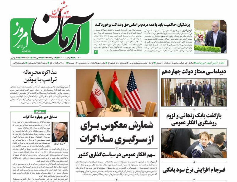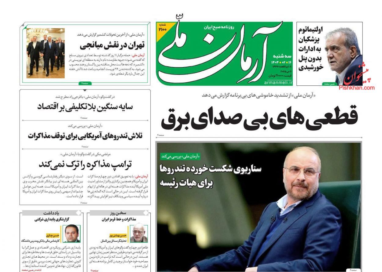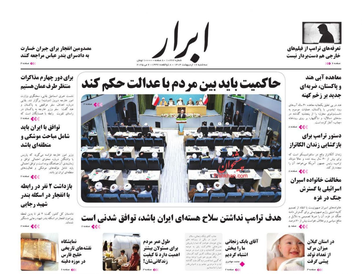 عناوین روزنامه های سهشنبه ۱۶ ارديبهشت ۱۴۰۴