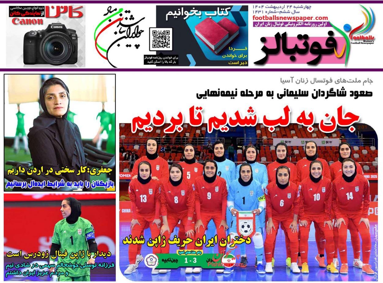 عناوین روزنامه های ورزشی چهارشنبه ۲۴ ارديبهشت ۱۴۰۴