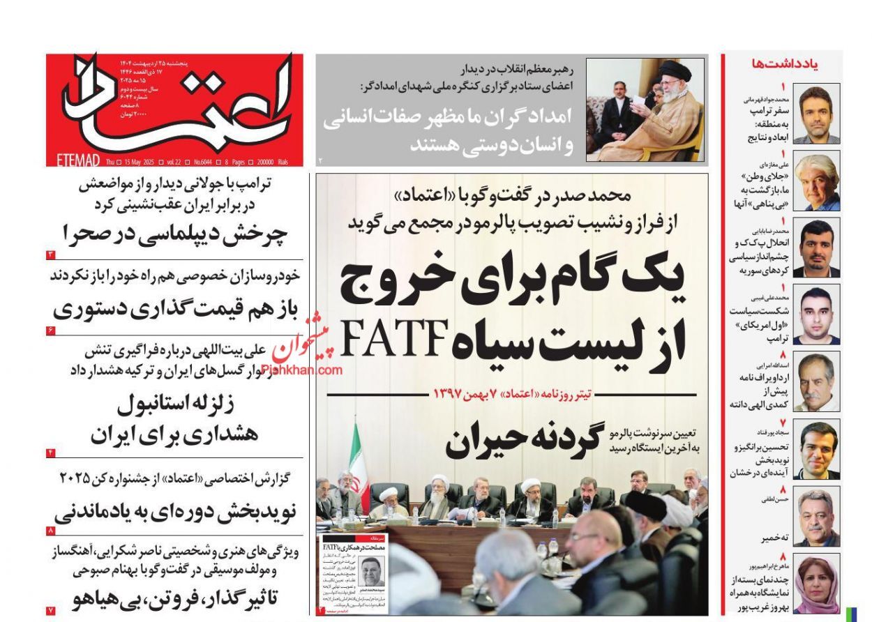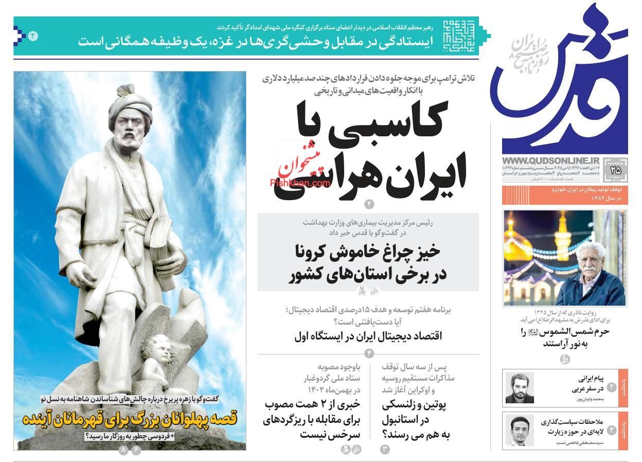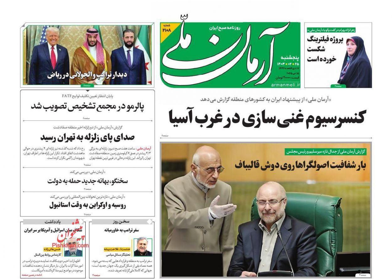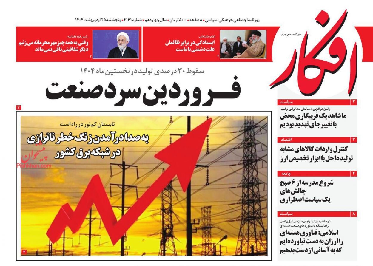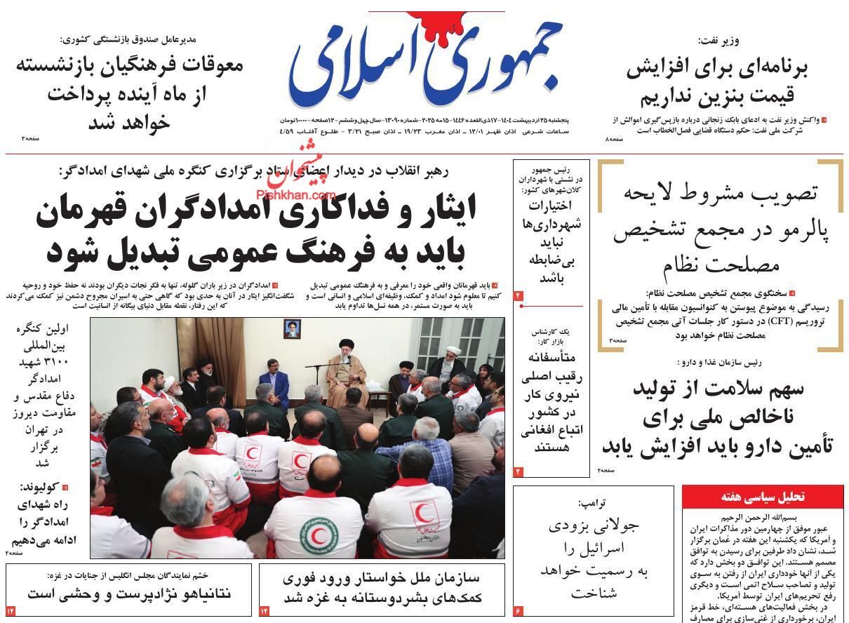 عناوین روزنامه های پنجشنبه ۲۵ ارديبهشت ۱۴۰۴