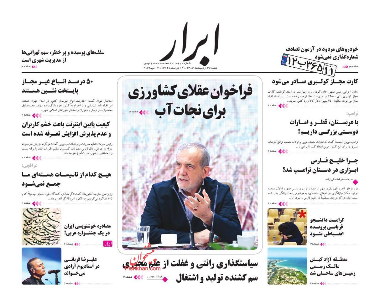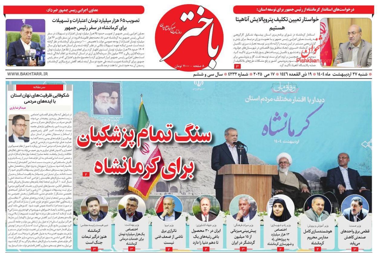 در ادامه عناوین روزنامه های شنبه ۲۷ ارديبهشت ۱۴۰۴ ر بخوانید.