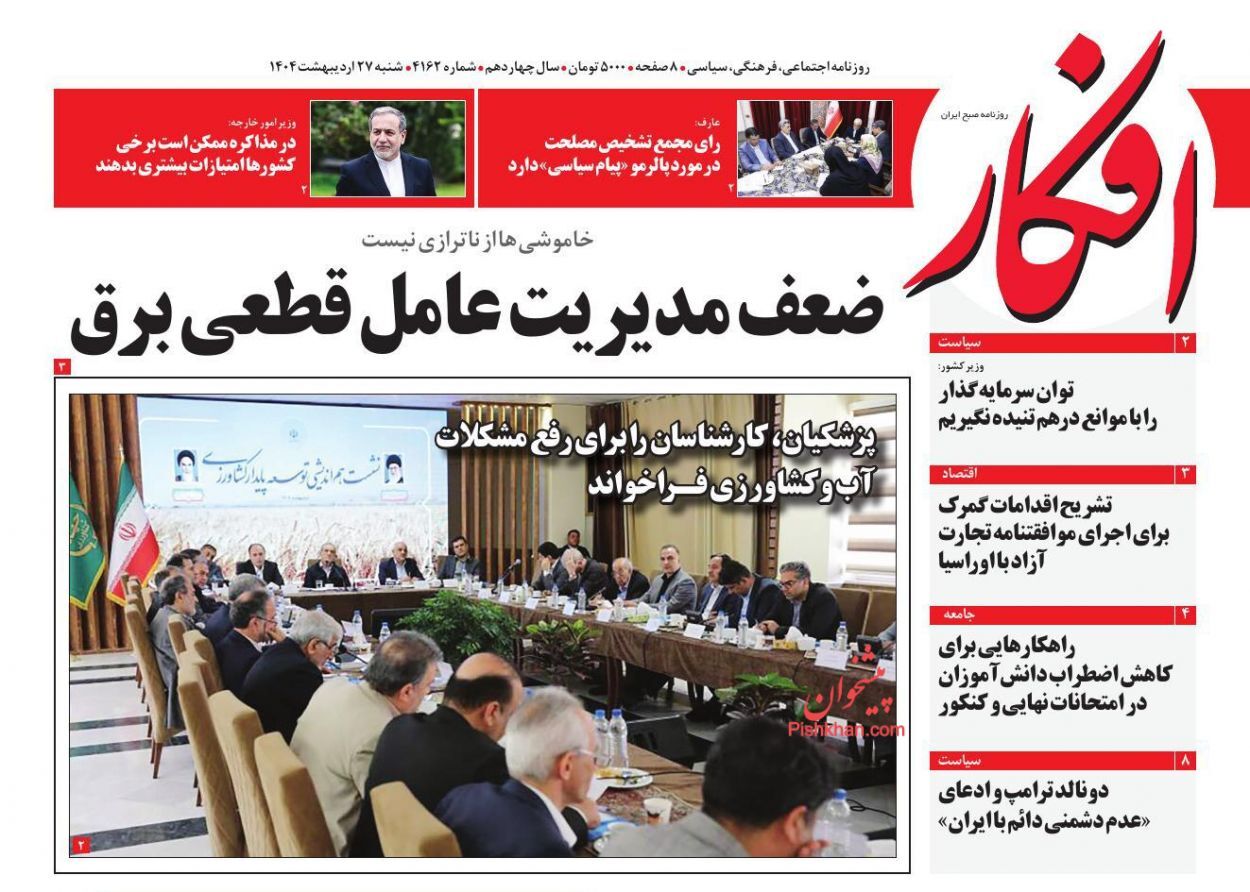 عناوین روزنامه های پنجشنبه ۲۵ ارديبهشت ۱۴۰۴
