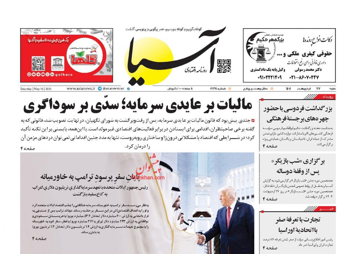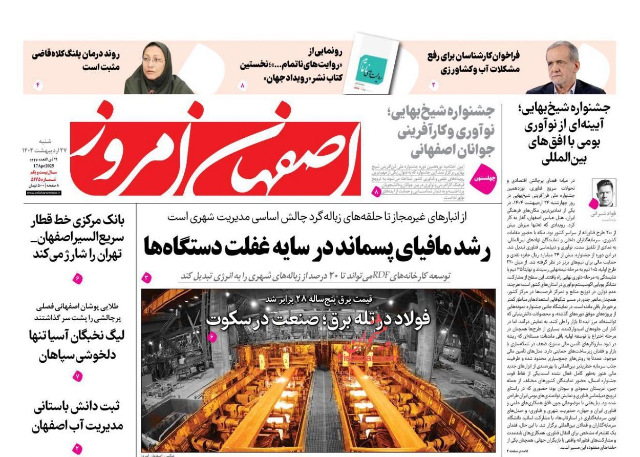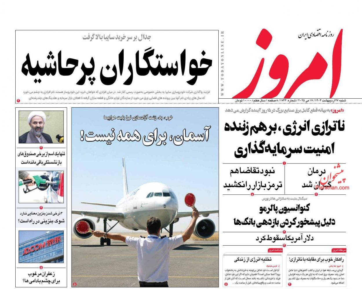 عناوین روزنامه های شنبه ۲۷ ارديبهشت ۱۴۰۴