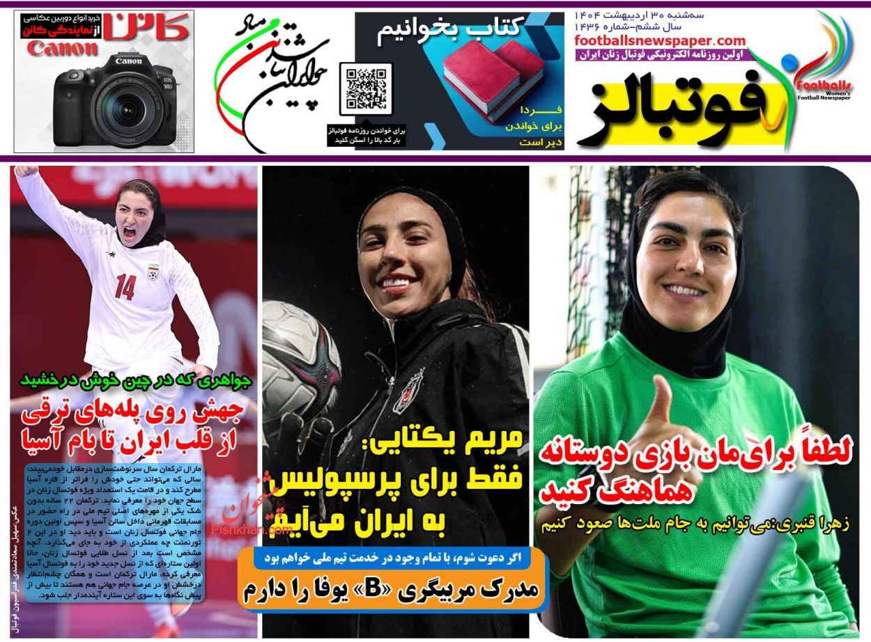 عناوین روزنامه های ورزشی سه‌شنبه ۳۰ ارديبهشت ۱۴۰۴