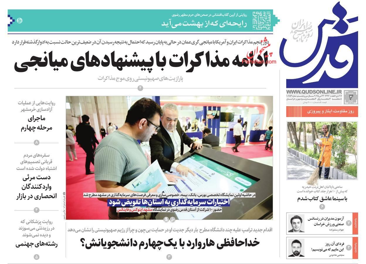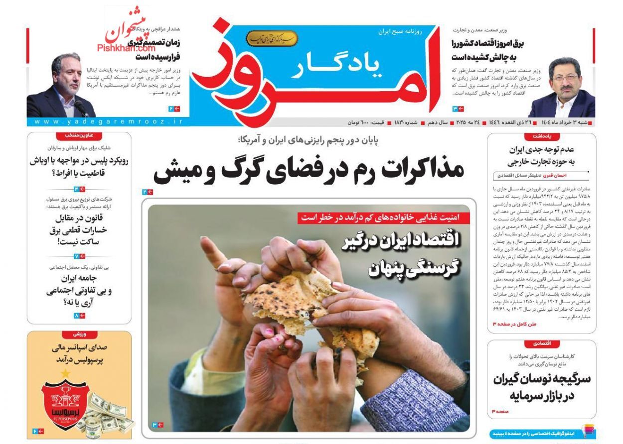 عناوین روزنامه های پنجشنبه ۱ خرداد ۱۴۰۴