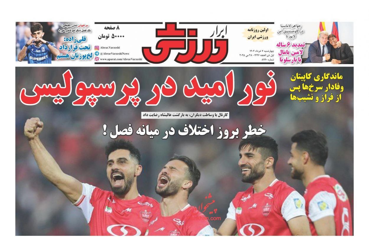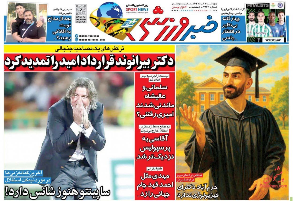 عناوین روزنامه های ورزشی چهارشنبه ۷ خرداد ۱۴۰۴