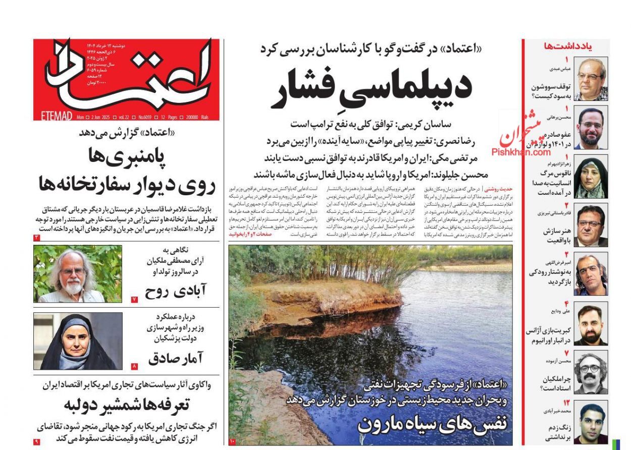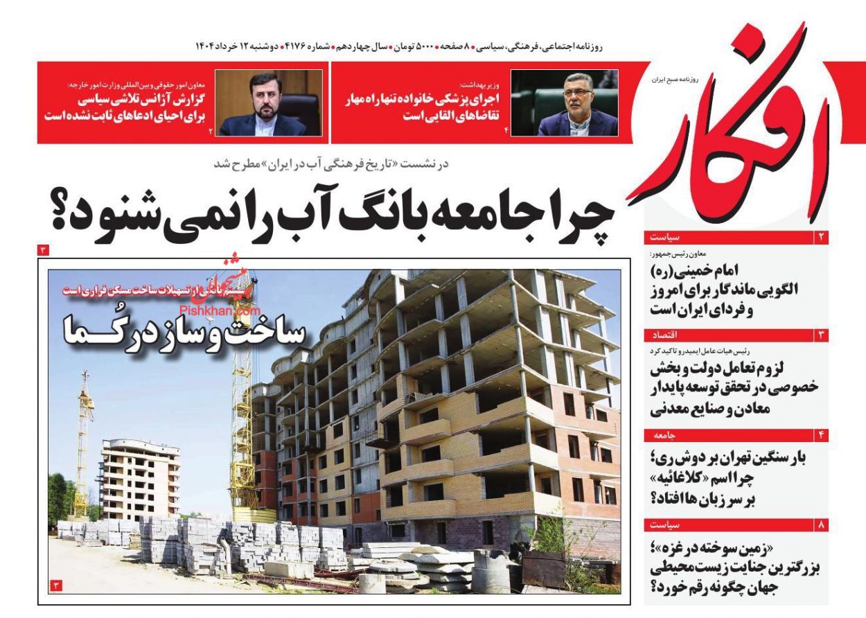در ادامه عناوین روزنامه های دوشنبه ۱۲ خرداد ۱۴۰۴ را ببینید.