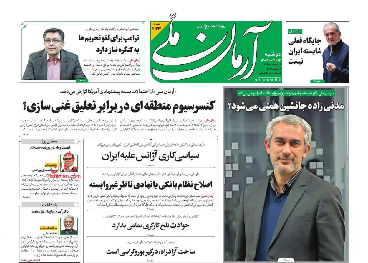 صفحه نخست روزنامههای امروز ۱۳ خرداد ۱۴۰۴