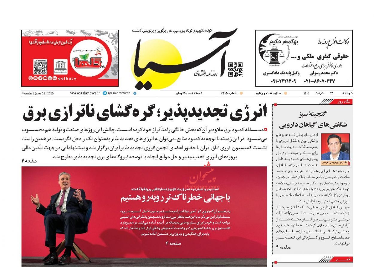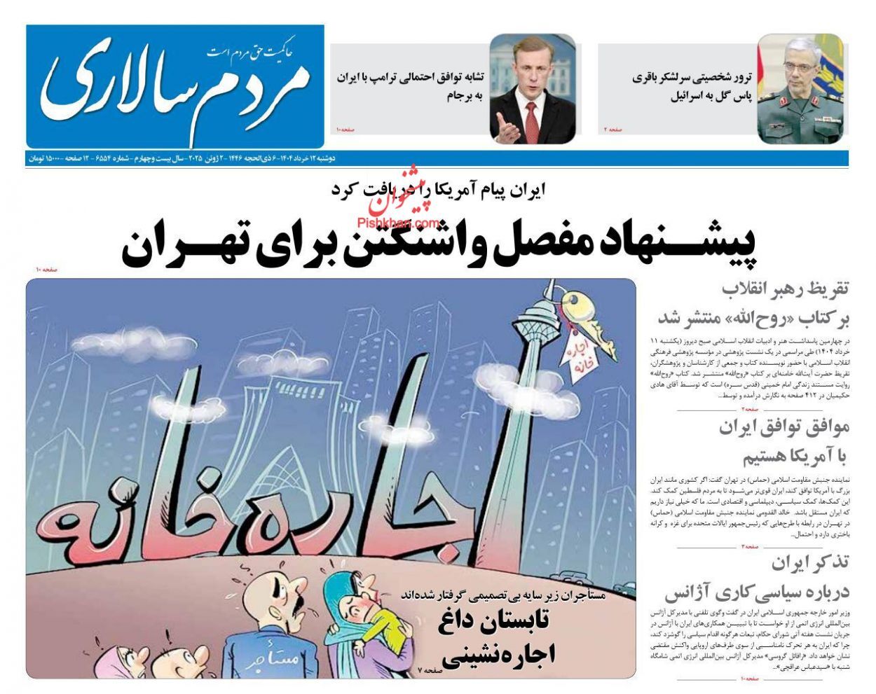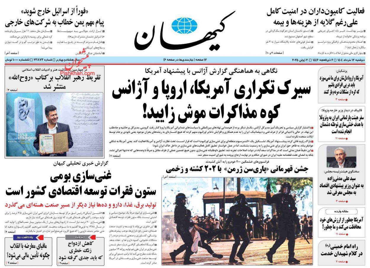 صفحه نخست روزنامههای امروز ۱۲ خرداد ۱۴۰۴
