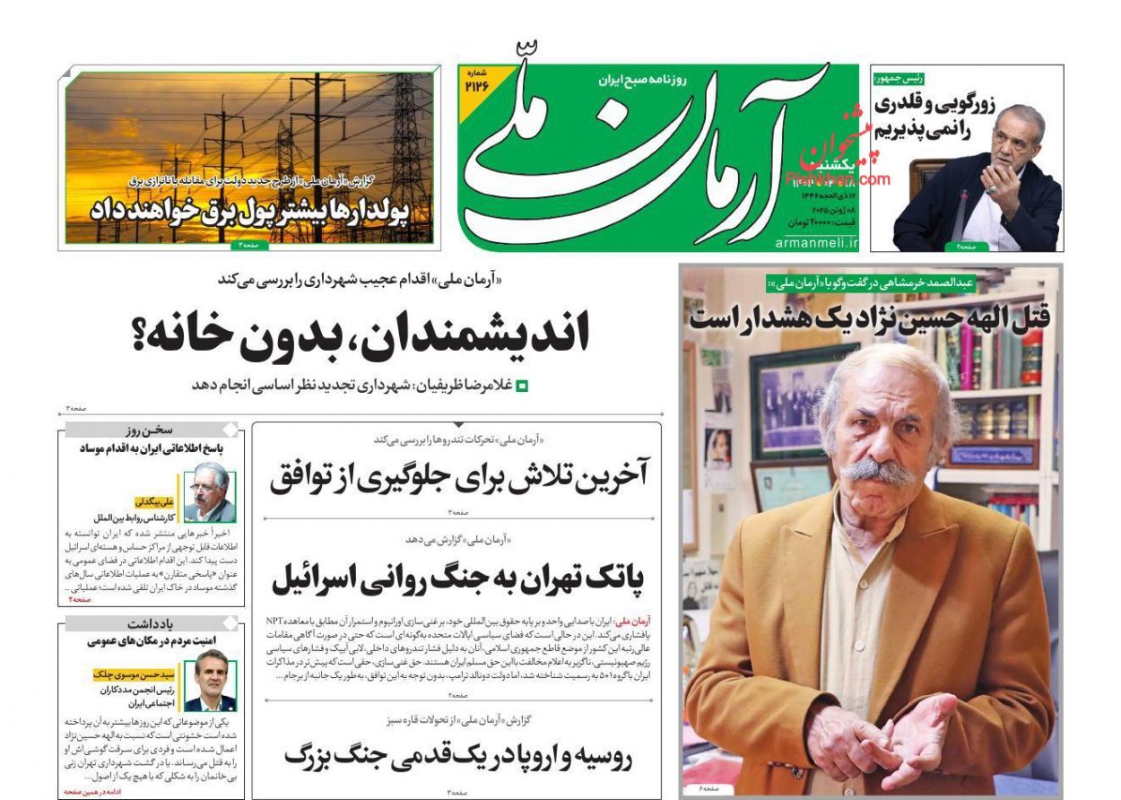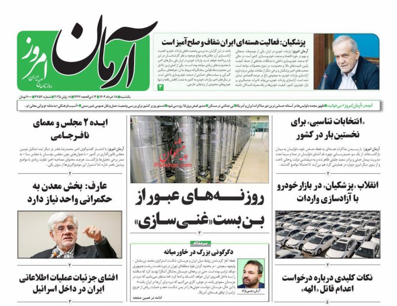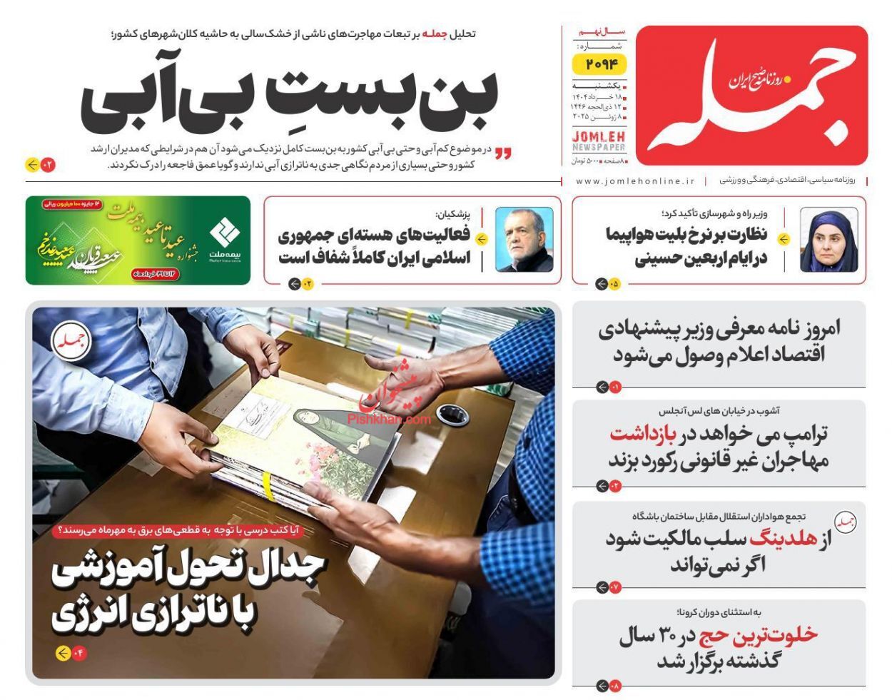 صفحه نخست روزنامههای امروز ۱۹ خرداد ۱۴۰۴