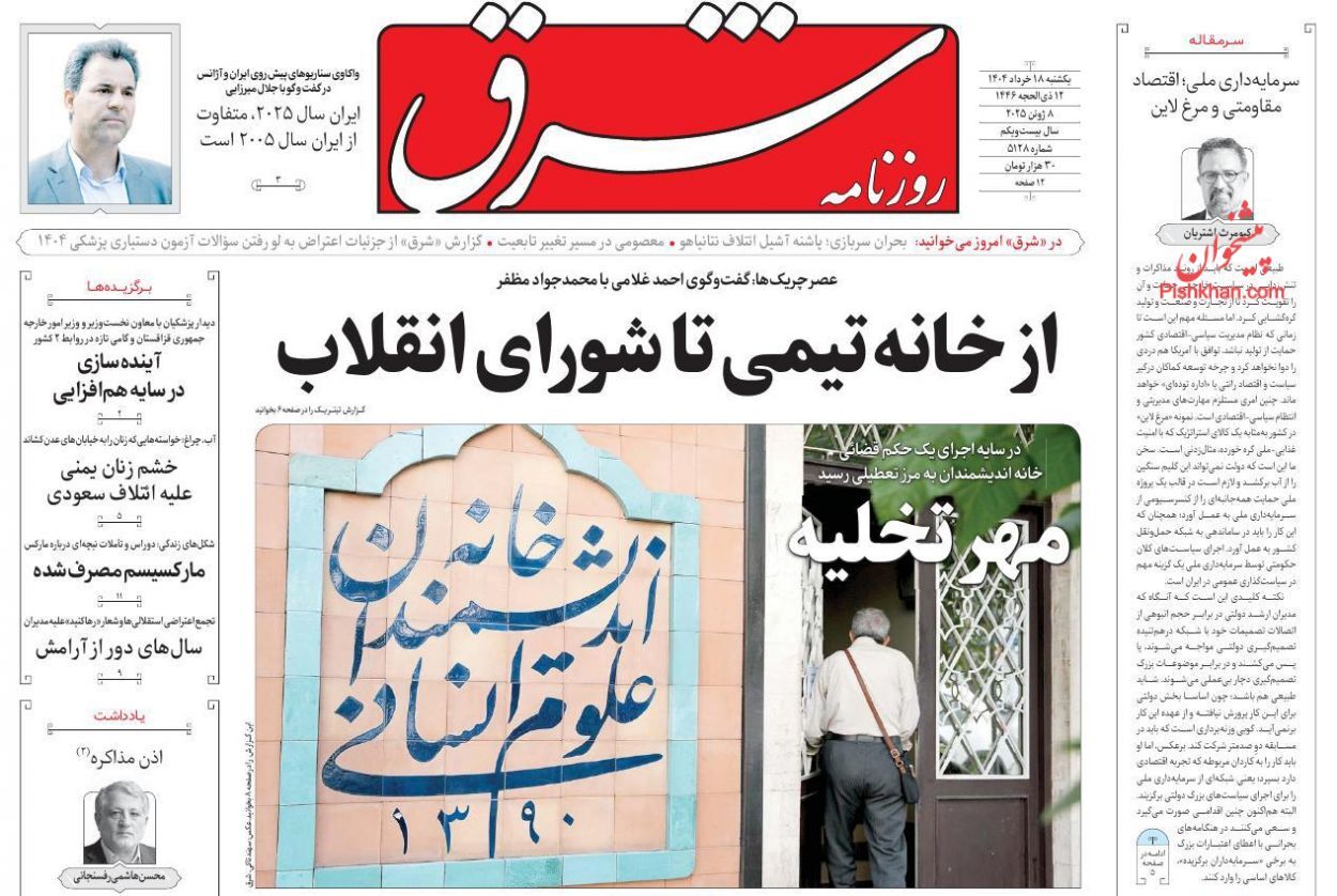 صفحه نخست روزنامههای امروز ۱۸ خرداد ۱۴۰۴