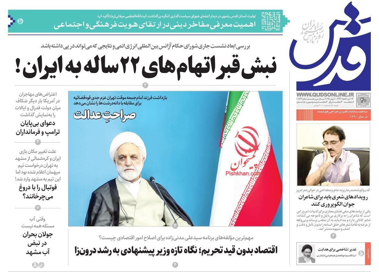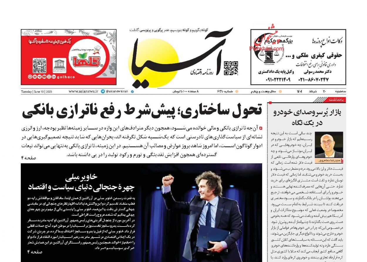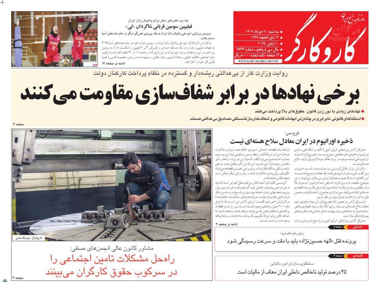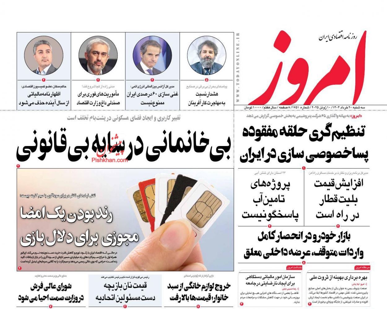 صفحه نخست روزنامههای امروز ۲۰ خرداد ۱۴۰۴
