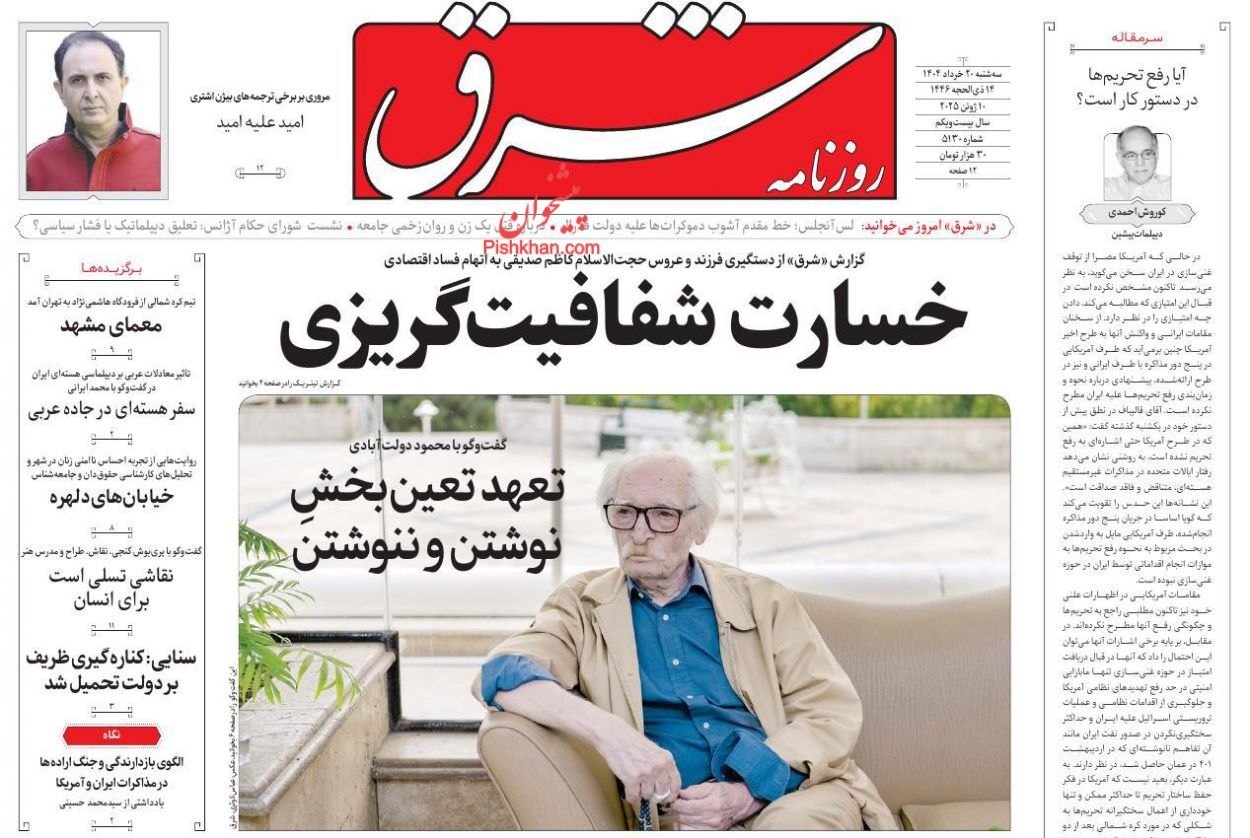 در ادامه عناوین روزنامههای امروز سهشنبه ۲۰ خرداد ۱۴۰۴ را ببینید.