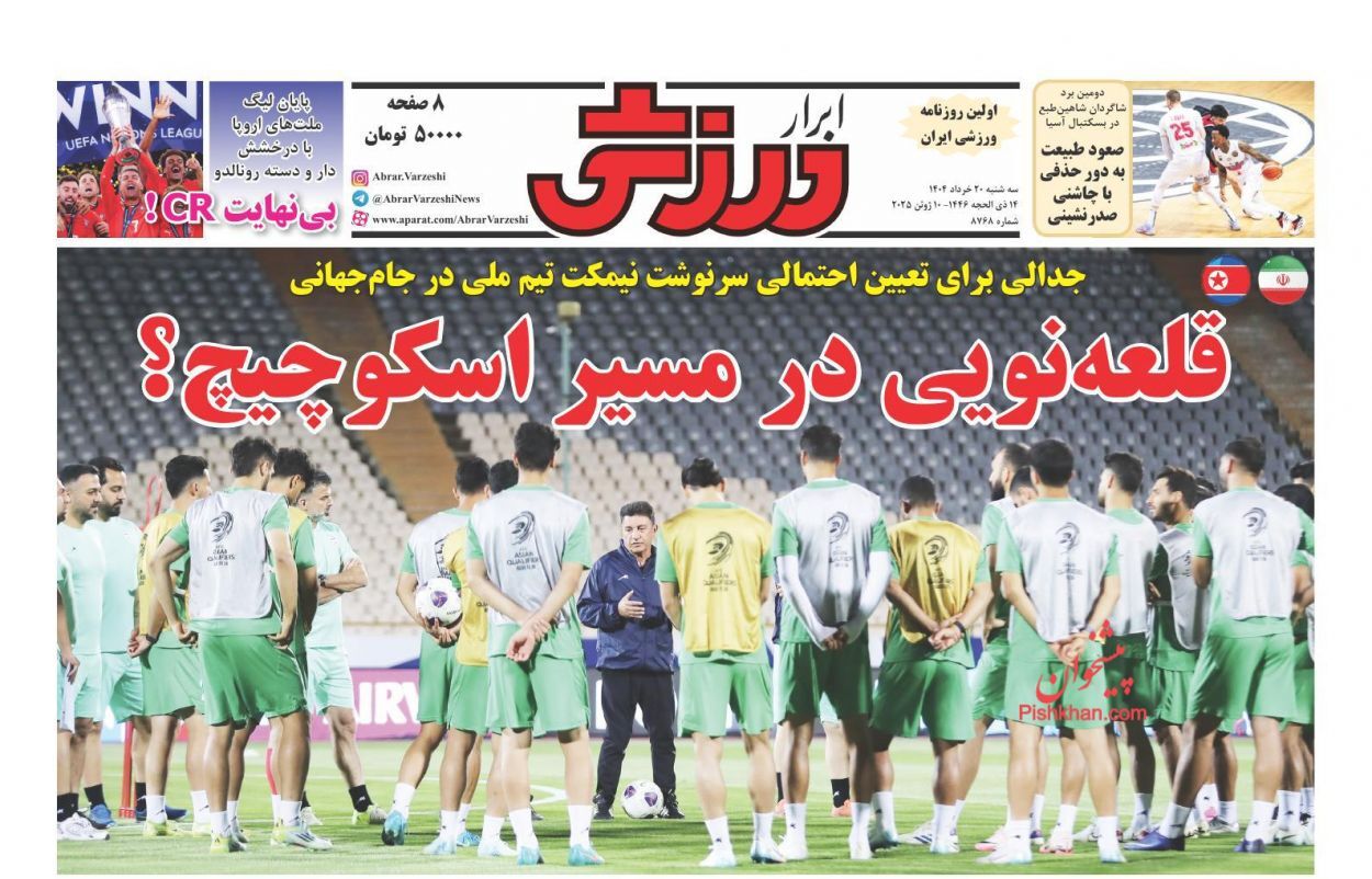 صفحه نخست روزنامههای ورزشی امروز ۲۰ خرداد ۱۴۰۴