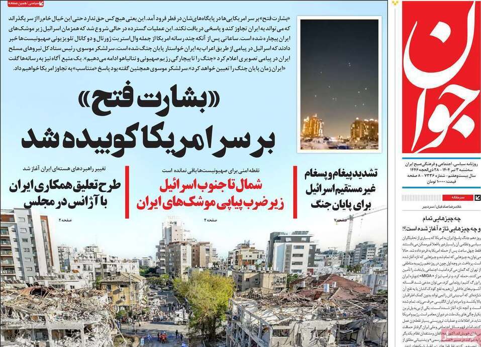 روزنامه‌های امروز به موضوعاتی نظیر پاسخ کوبنده نیرو‌های مسلح ایران به آمریکا و دیدار پوتین و وزیر امور خارجه کشورمان پرداخته‌اند.