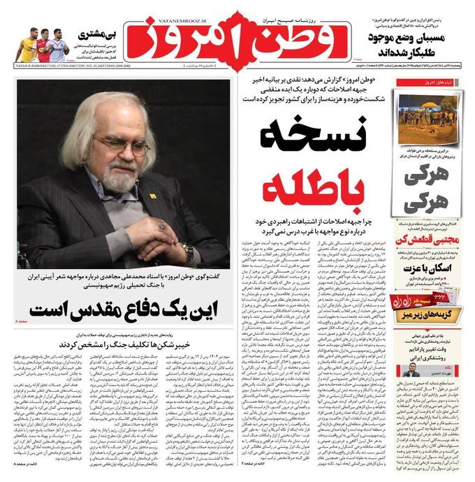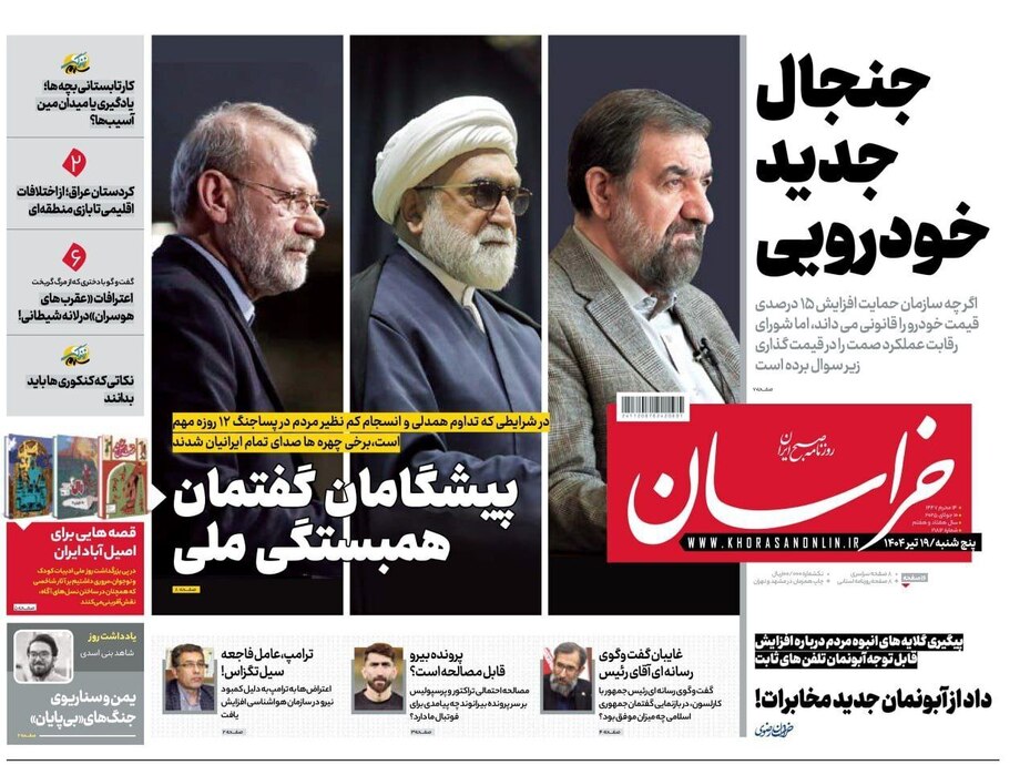 تصاویر | صفحه نخست روزنامهها - پنجشنبه ۱۹ تیر