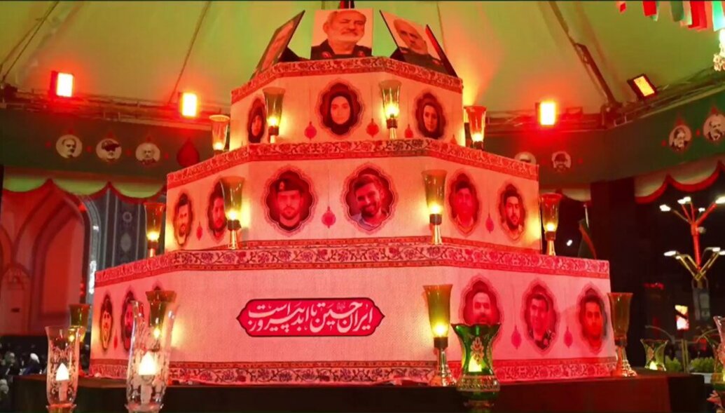 در میانه صحن، خیمهگاه عزای حسینی برپا شده بود که تصاویر مظلومانه مادران، دختران، کودکان، سرداران، فرماندهان، دانشمندان هستهای و سربازان ایران اسلامی که در حملات دوازدهروزه اخیر رژیم صهیونیستی به شهادت رسیدند، به نمایش درآمده بود. این تصاویر، نماد روشنی از مظلومیت و عظمت مقاومت ملت ایران در برابر تجاوزگری و توطئه بودند.