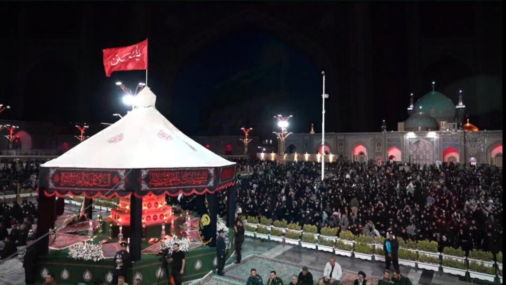 با ذکر نام شهدای مظلوم ایران اسلامی، زائران، مجاوران و خادمان حرم رضوی یکصدا فریاد "لبیک یا حسین" سر دادند و اشکها، شعارها و سینهزنیها، فضای صحن پیامبر اعظم(ص) را به خیمهگاه عشق و ایثار تبدیل کرد.
