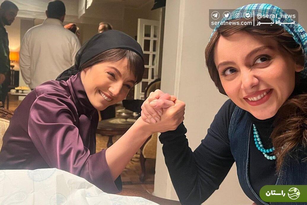عکس | مچ اندازی مهسا حجازی و نازنین بیاتی در پشت صحنه تاسیان