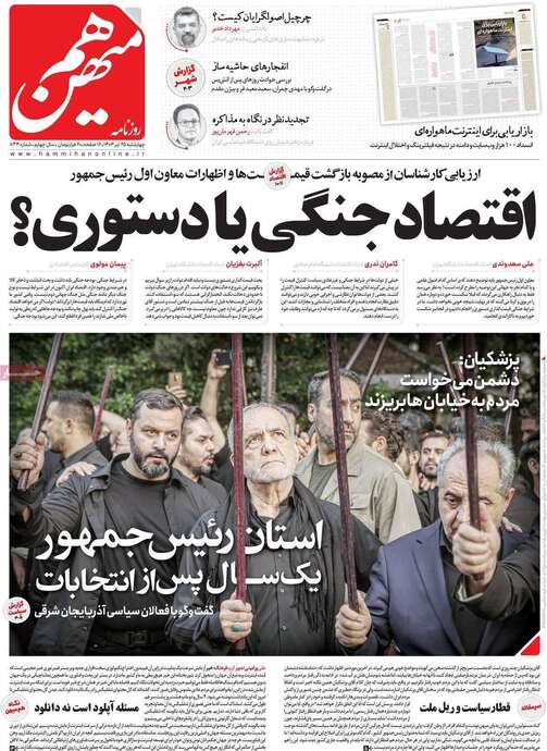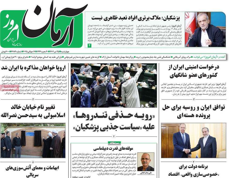 صفحه نخست روزنامهها - چهارشنبه ۲۵ تیر