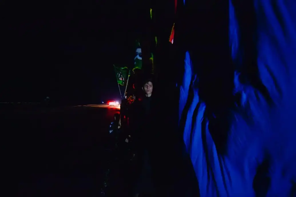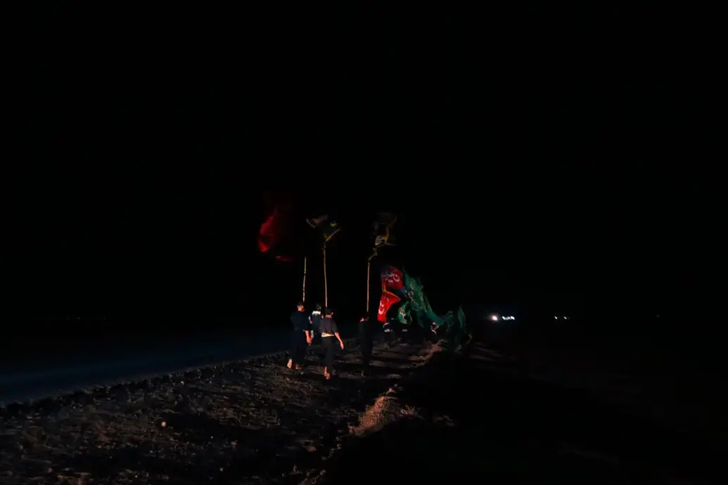 این گزارش تصویری، حرکت شبانه زائران اربعین حسینی را در مسیر کربلا به تصویر میکشد.
