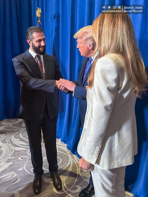 در حاشیه برگزاری هشتادمین نشست مجمع عمومی سازمان ملل متحد در نیویورک، «ابو محمد الجولانی»، رئیسدولت موقت سوریه با دونالد ترامپ، رئیسجمهور آمریکا دیدار کرد. این دیدار با حضور همسر رئیس جمهور آمریکا انجام شد.