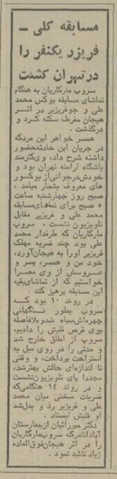۵۰ سال پیش هیجان مسابقه بوکس محمد علی کلی و جو فریزر در مانیل باعث سکته قلبی یک شهروند تهرانی شد.