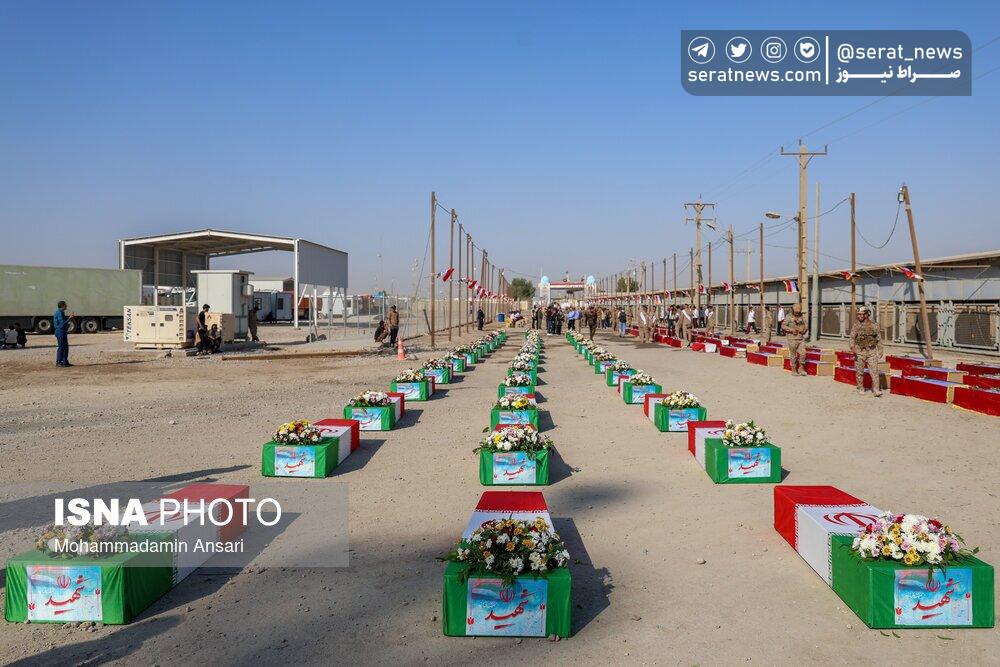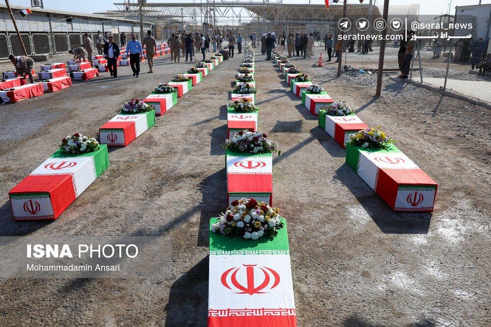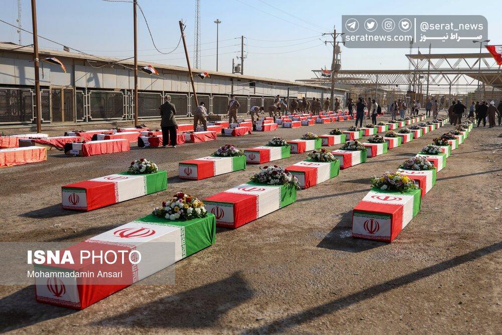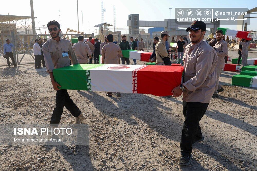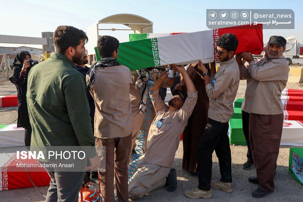 تصاویر | ورود پیکرهای مطهر ۴۴ شهید تازه تفحصشده به کشور از مرز شلمچه