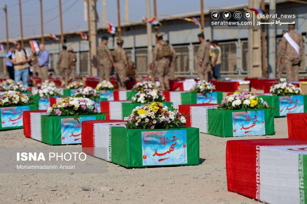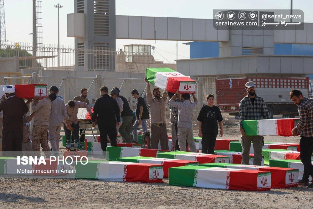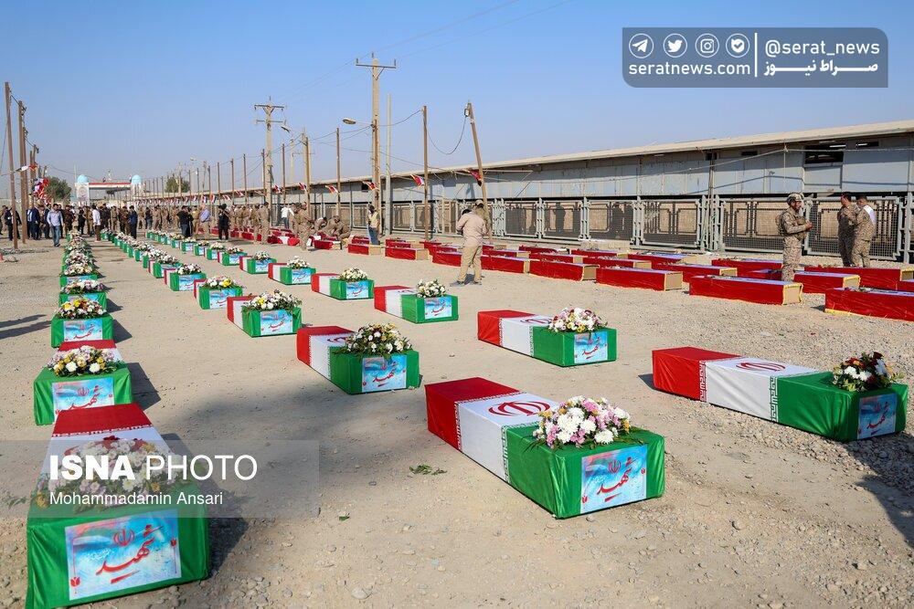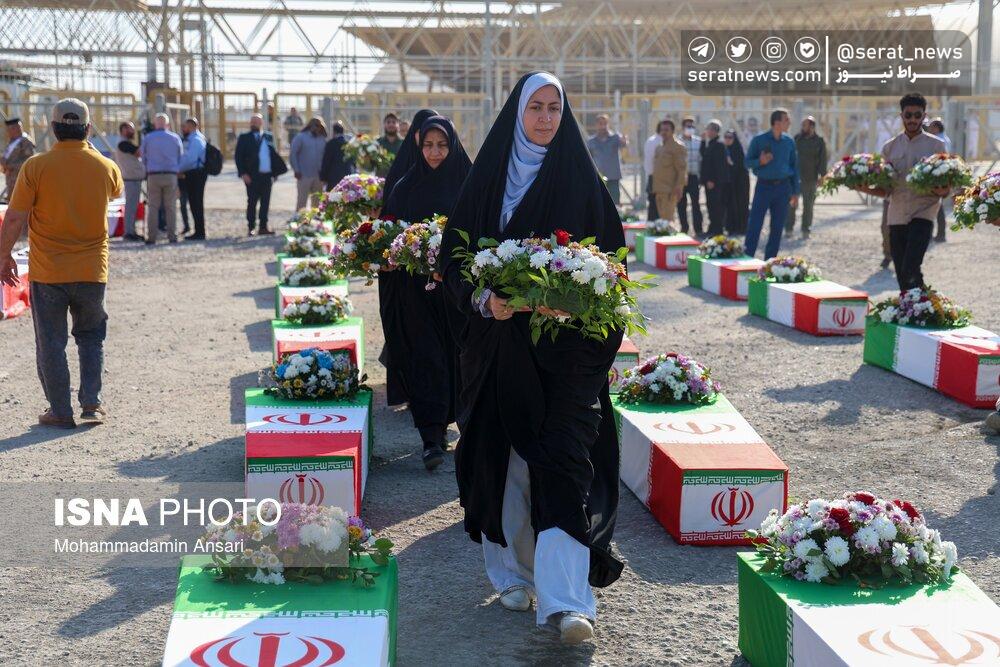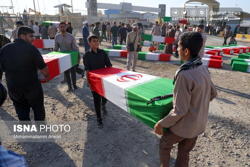 تصاویر | ورود پیکرهای مطهر ۴۴ شهید تازه تفحصشده به کشور از مرز شلمچه